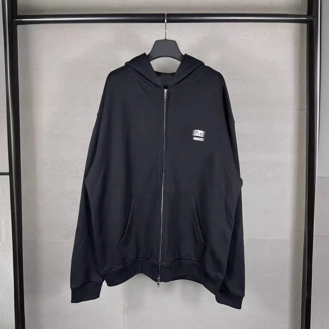 巴黎反字母大LOGO图标刺绣开衫拉链连帽卫衣外套男女款情侣款潮流