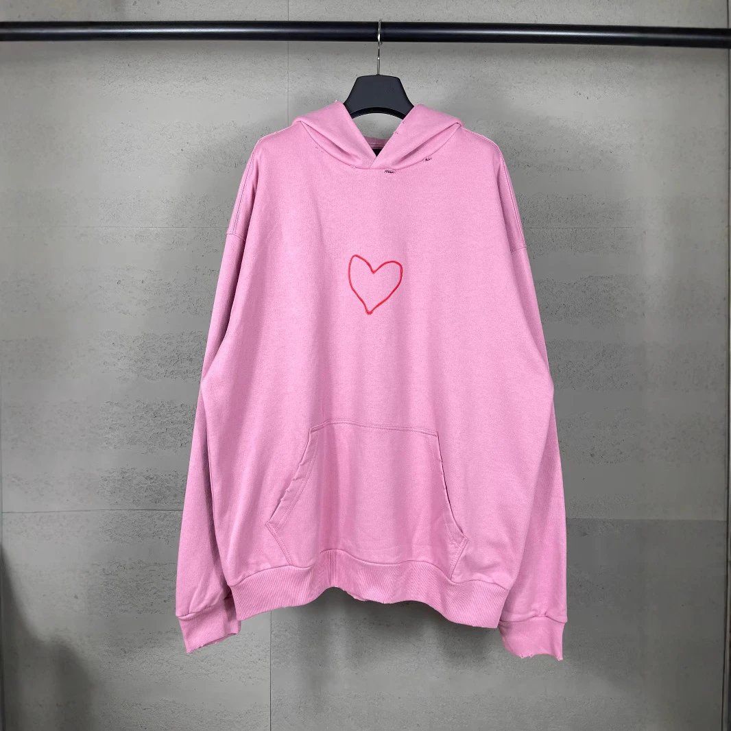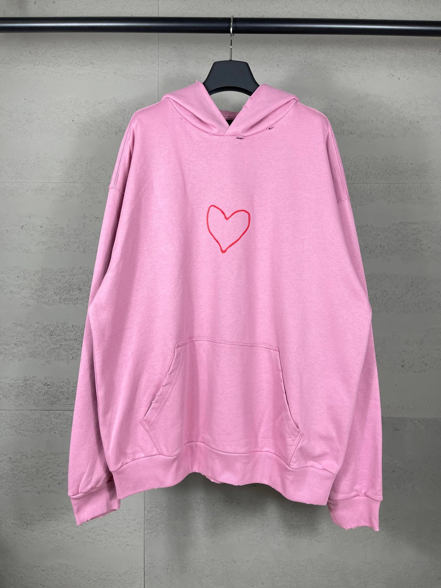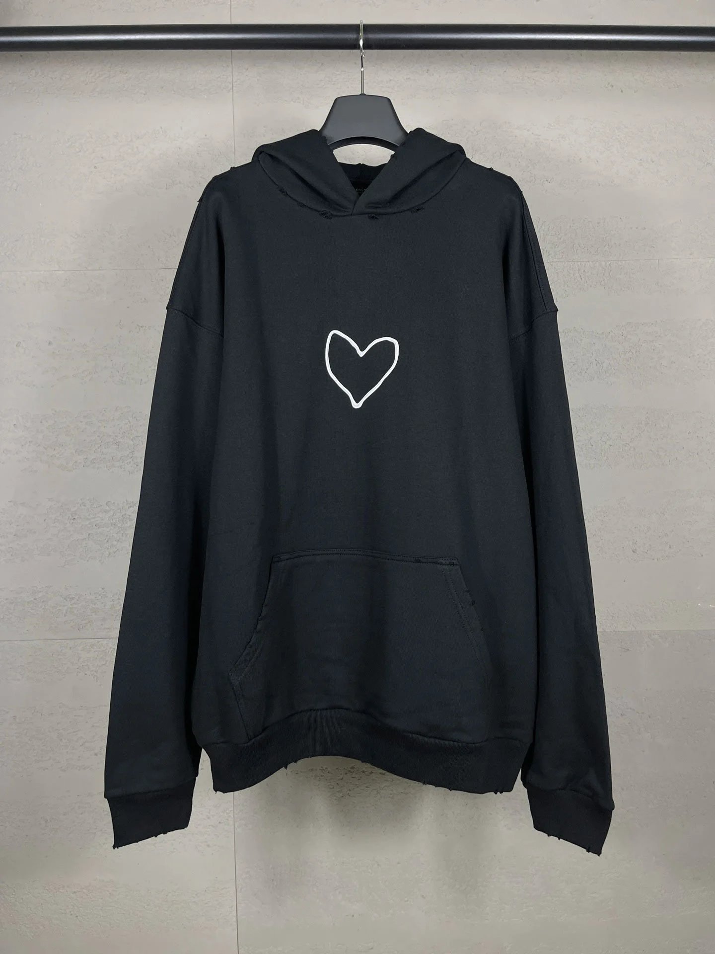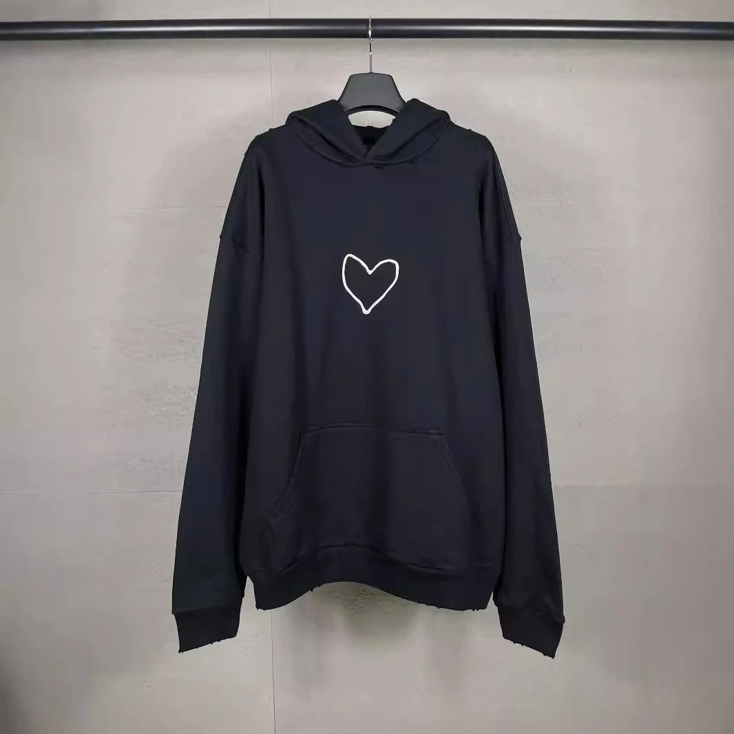 秋冬巴黎七夕限定款爱心LOGO印花成品洗水磨烂做旧连帽卫衣男