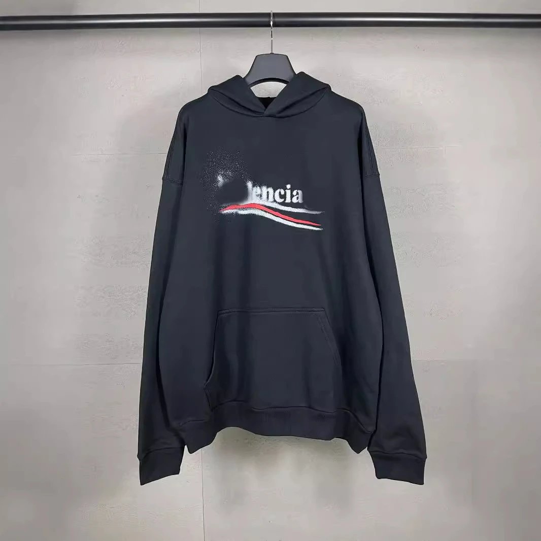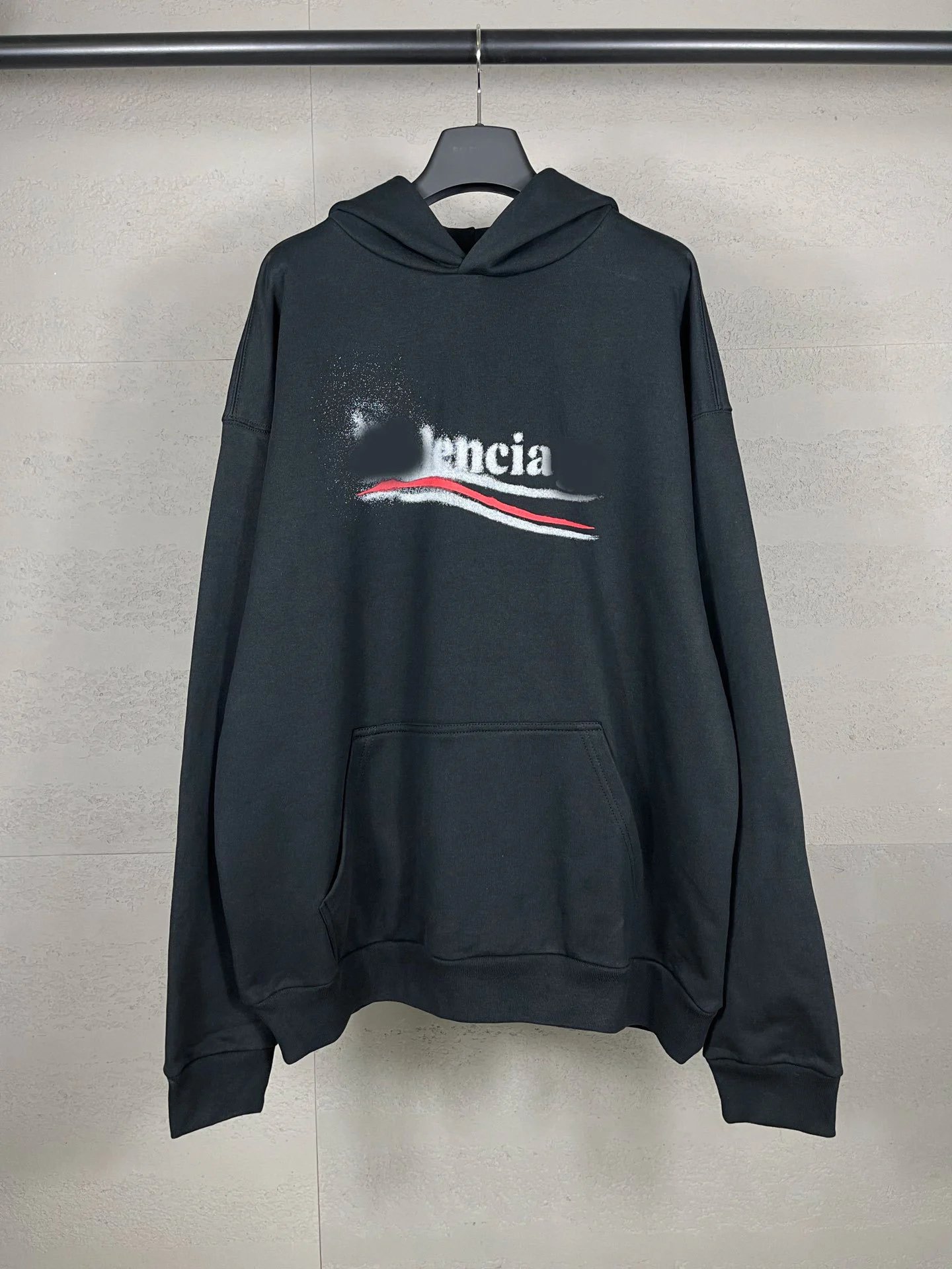 巴黎经典模糊可乐字母LOGO印花涂鸦连帽卫衣宽松休闲男女款潮