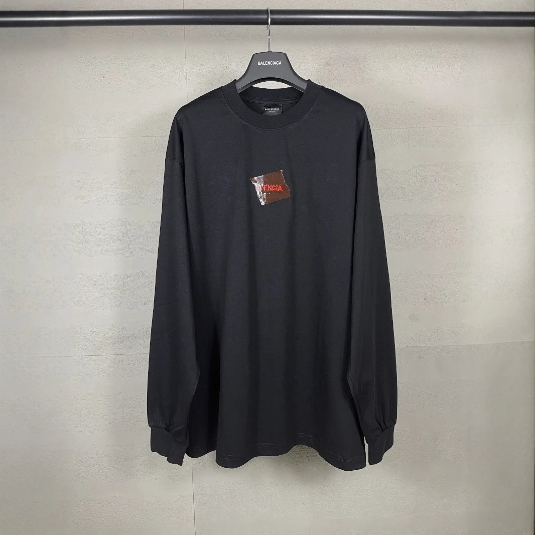 春秋季巴黎前后字母LOGO刺绣胶带压胶长袖T恤宽松休闲男女款潮