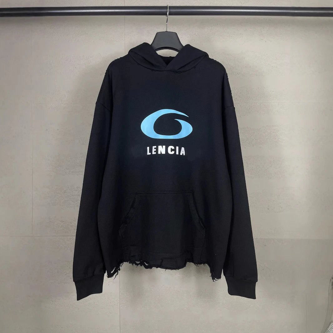 秋冬巴黎LOOP SPORTS ICON印花洗水下摆礳烂做旧连帽卫衣男女款