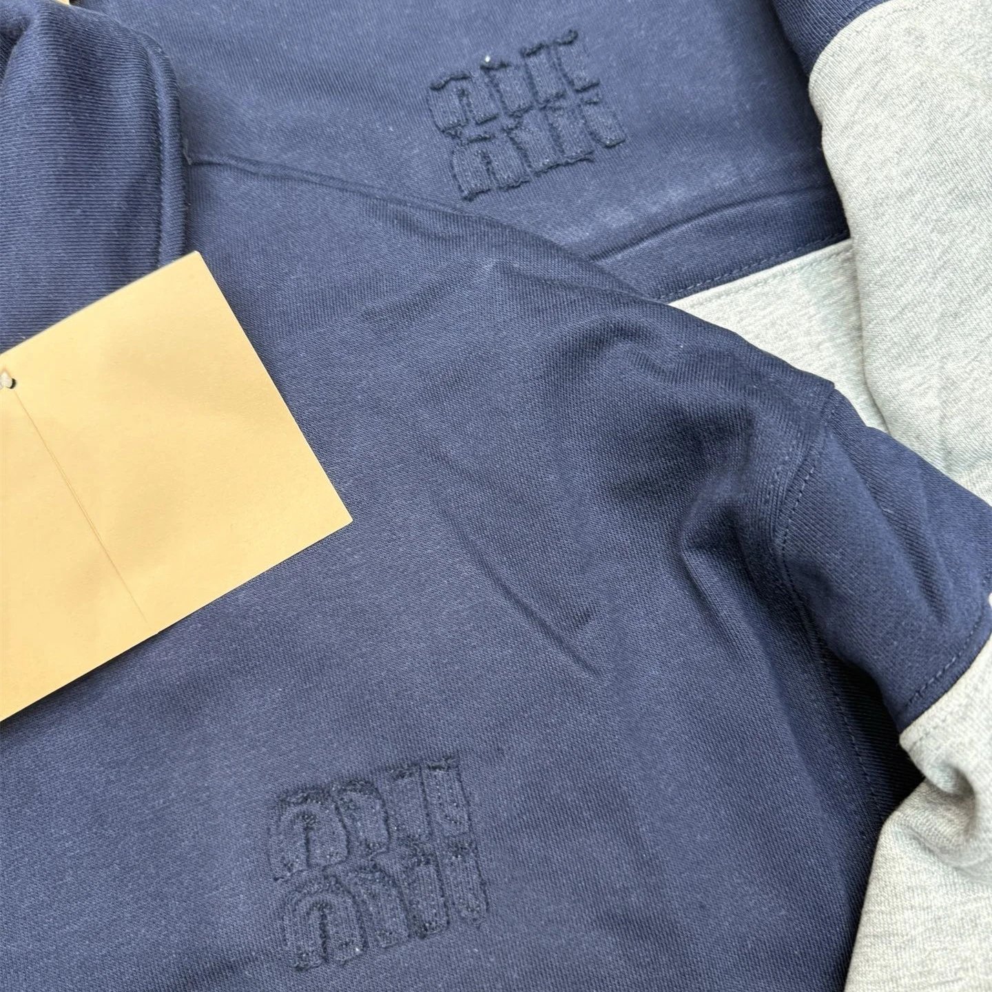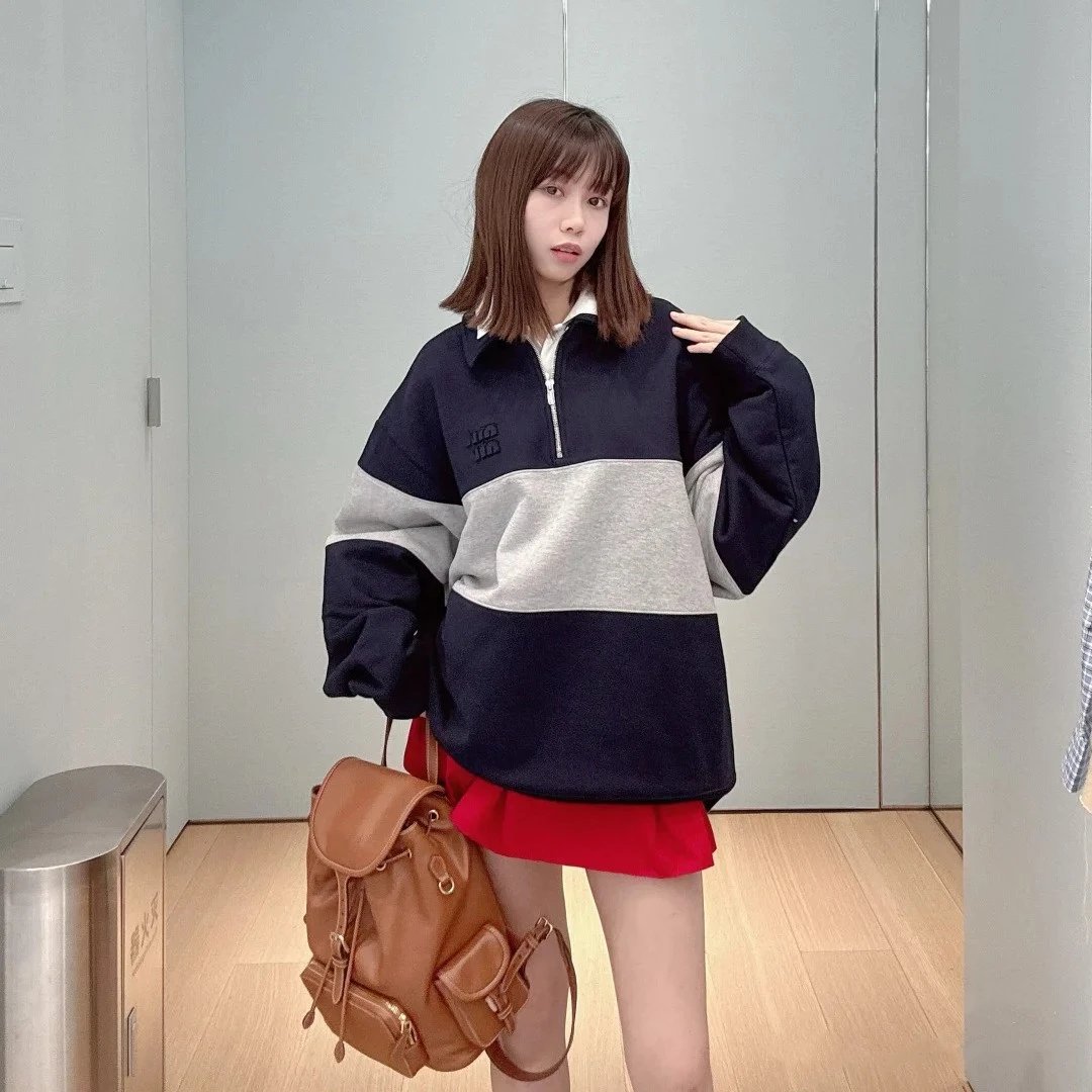 秋冬新款本MIU缪家半拉链贴布刺绣套头宽松卫衣男女
