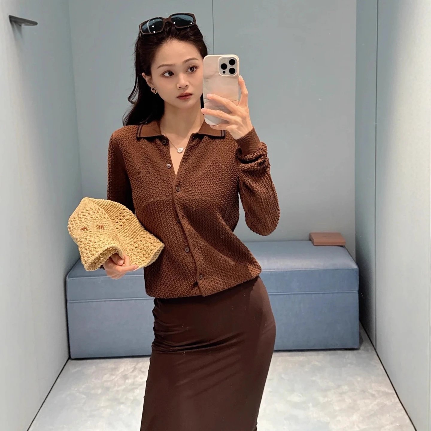 MIU缪家小红书款内搭镂空长袖开衫针织衫女装