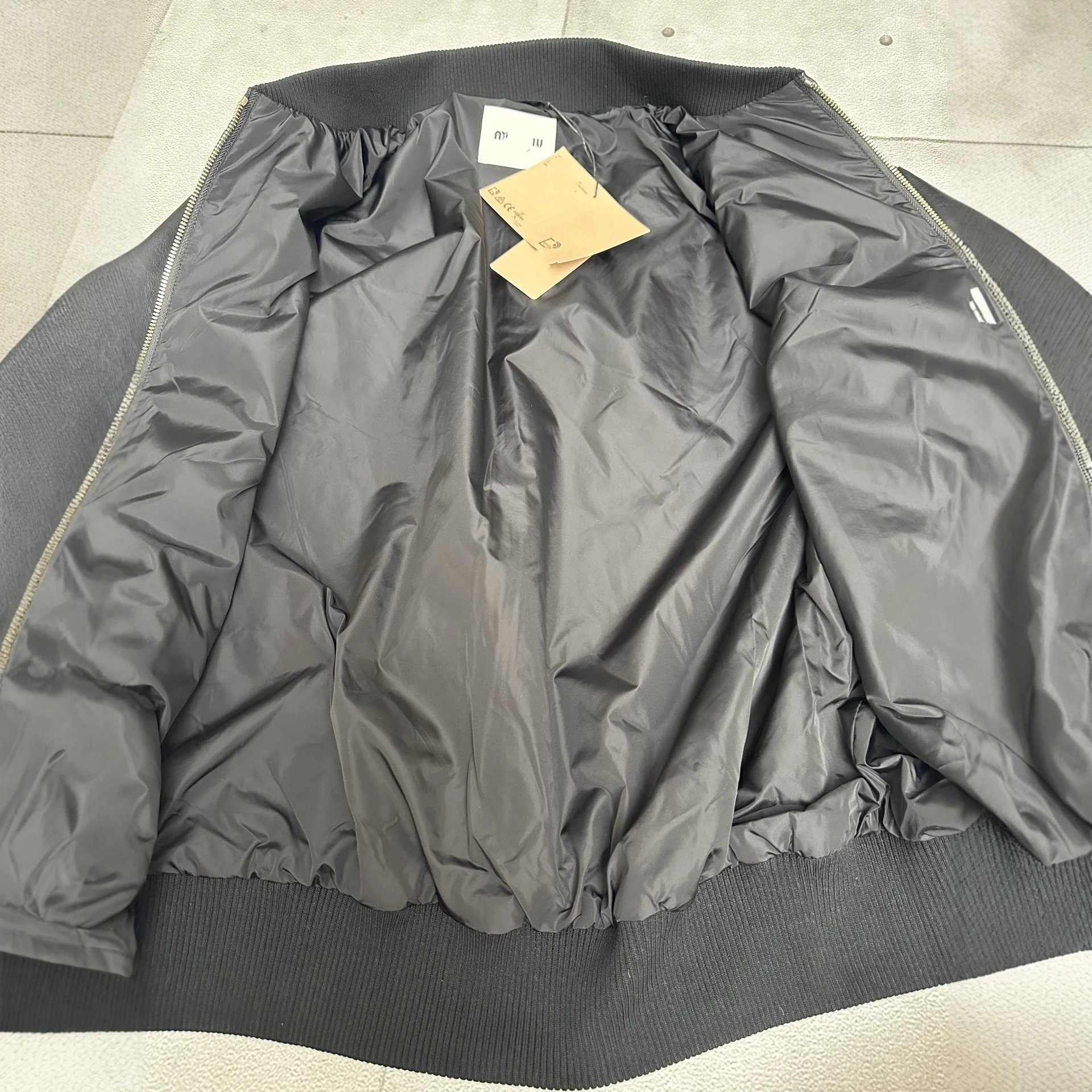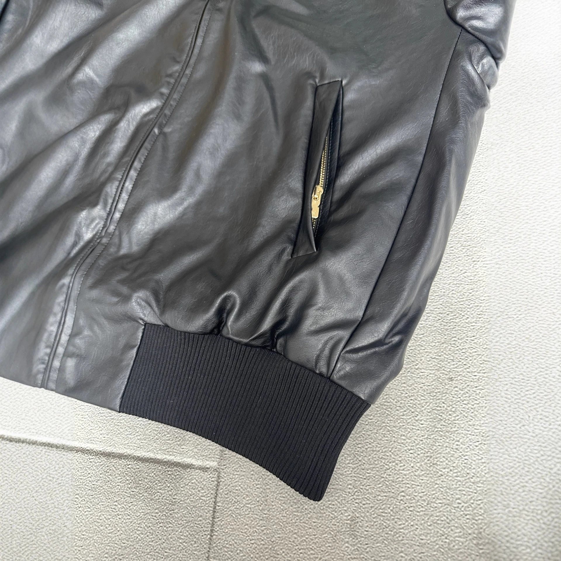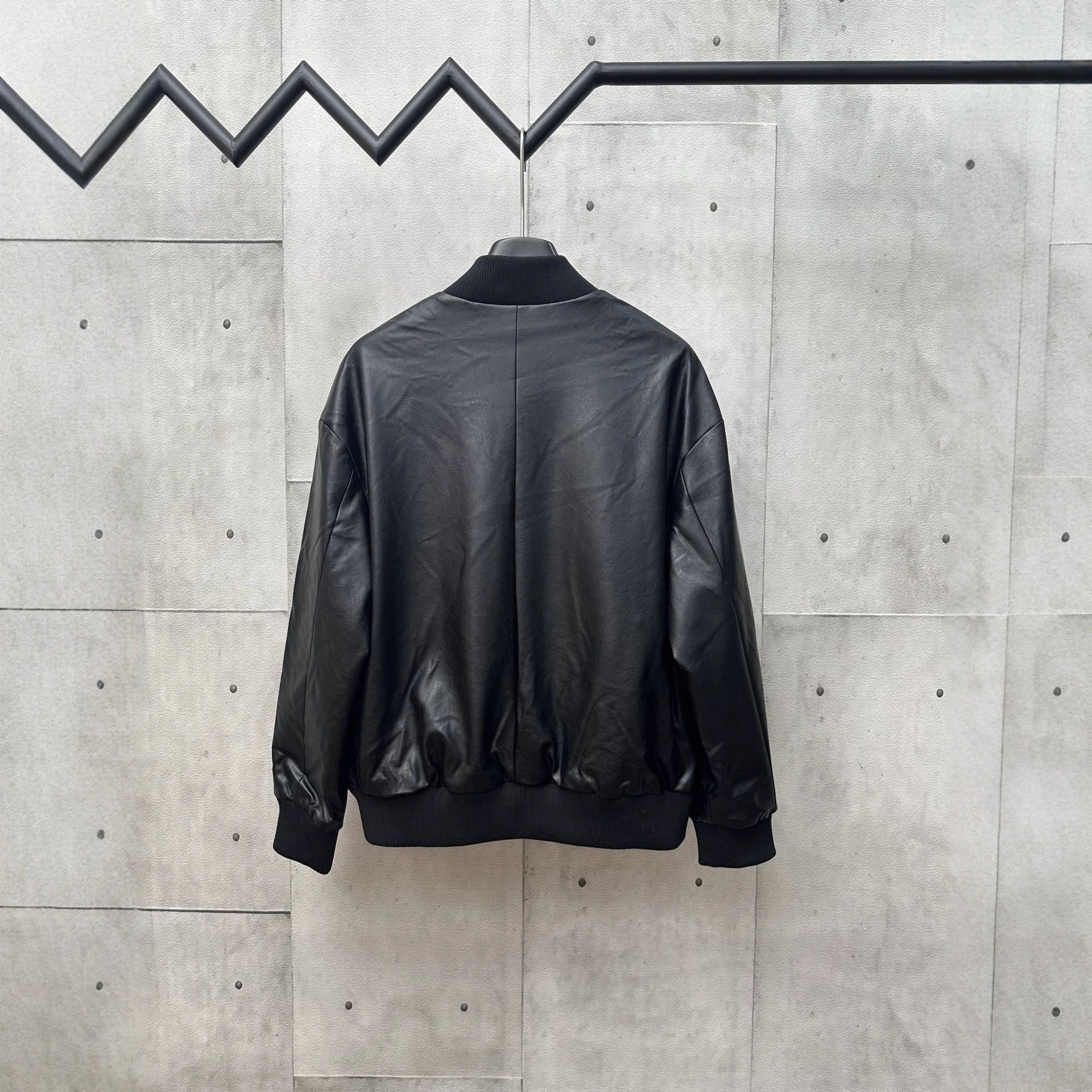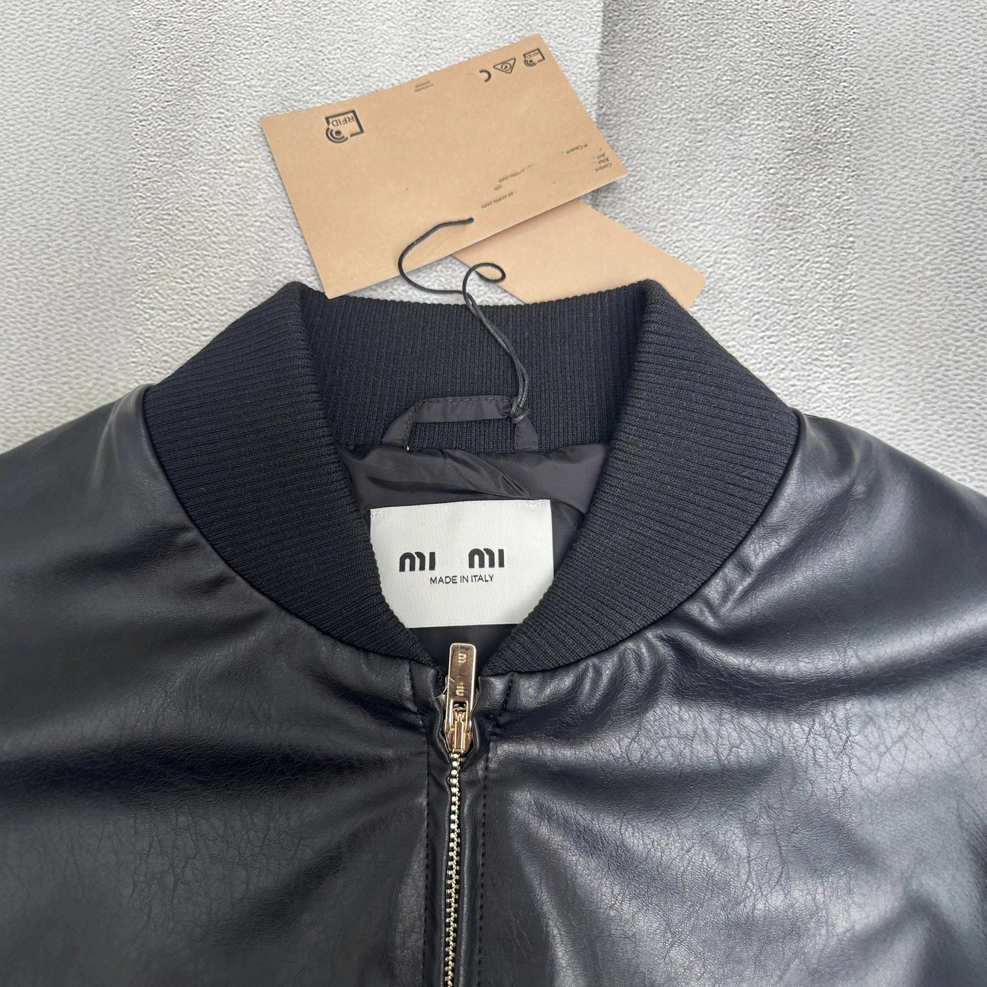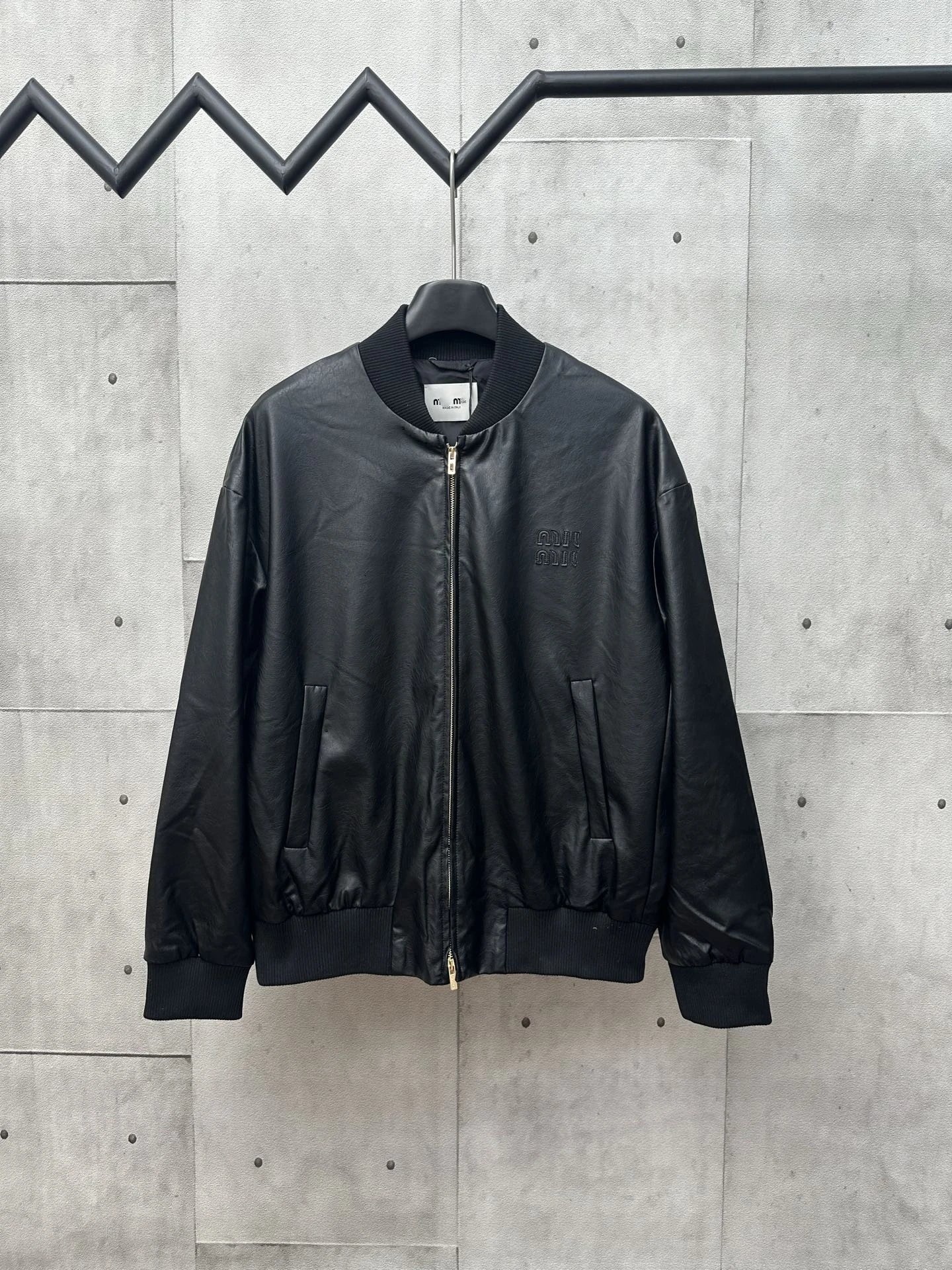 MIU缪家徽标字母刺绣纯色皮衣夹克外套男女