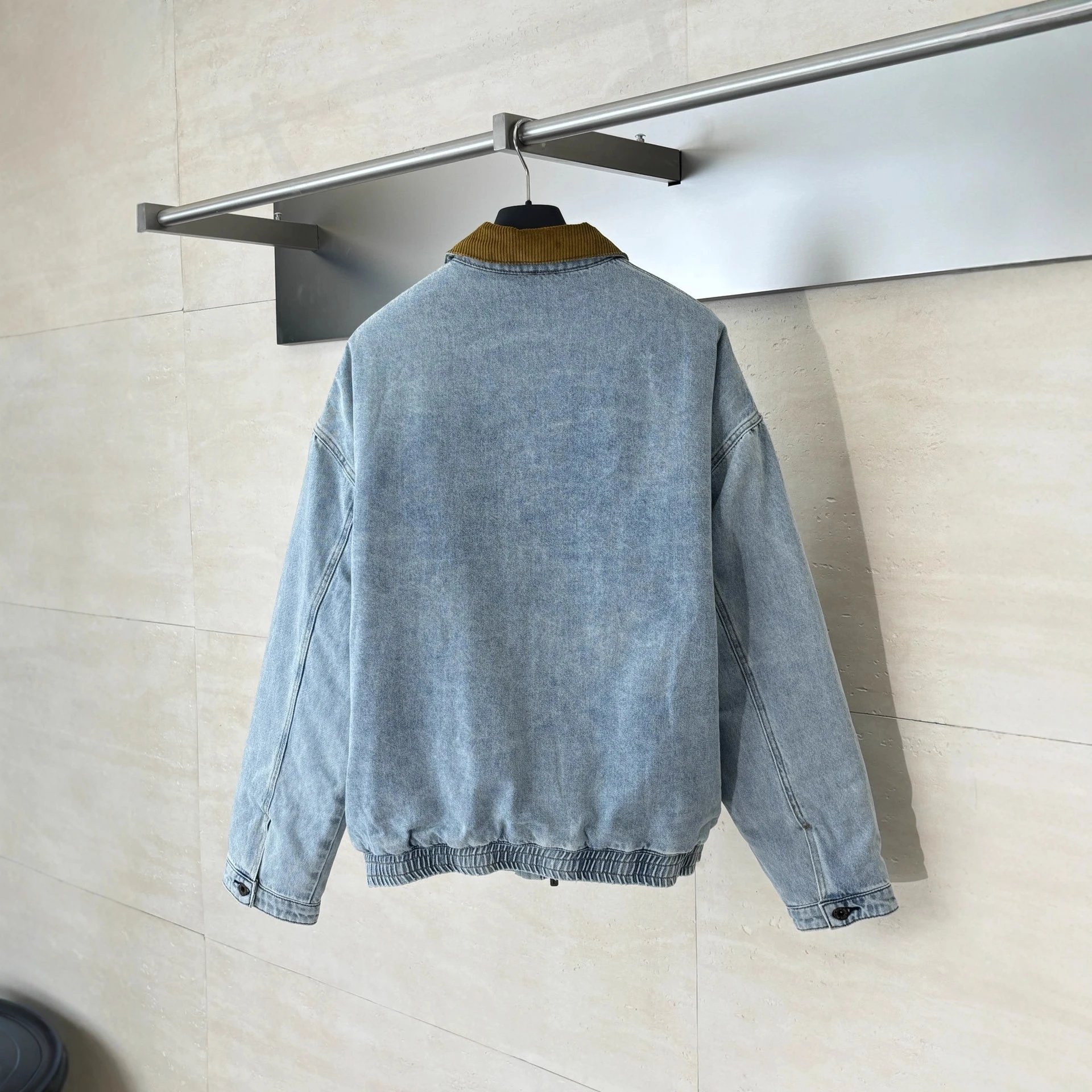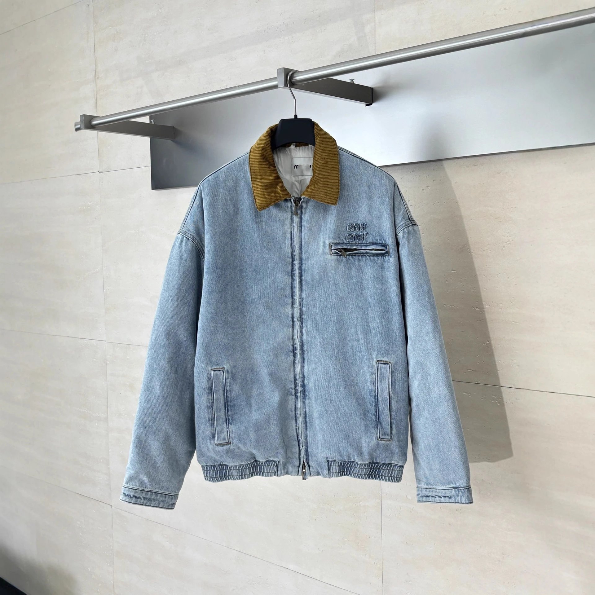 MIU缪家小红书网红款灯芯绒领做旧牛仔棉服夹克外套男女