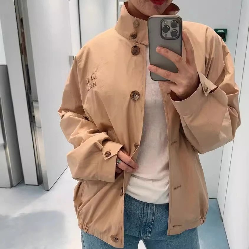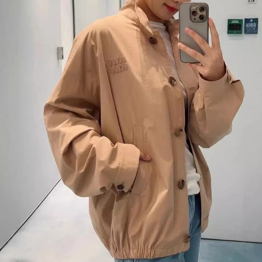 MIU家复古时髦学院风豆沙色府绸夹克外套男女装