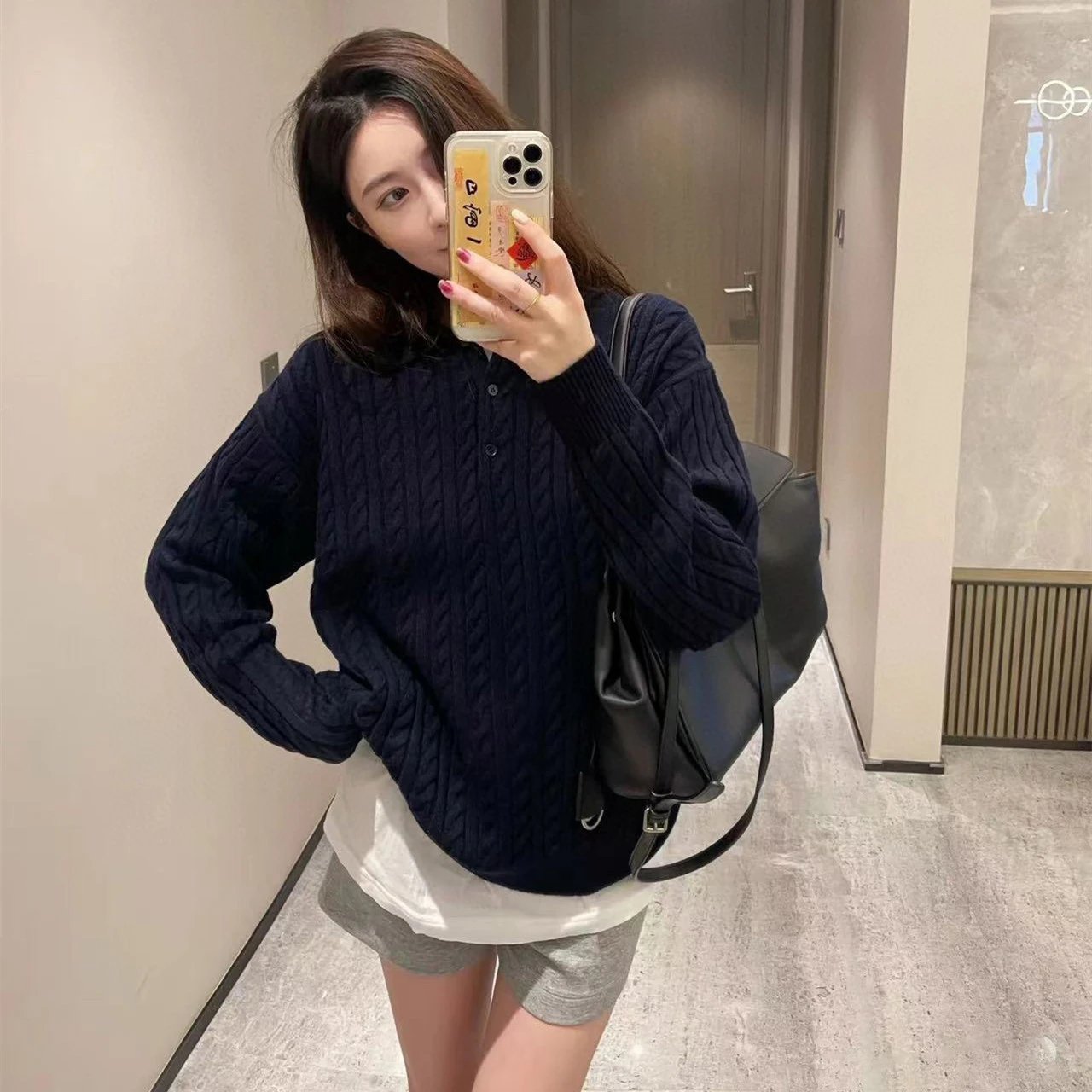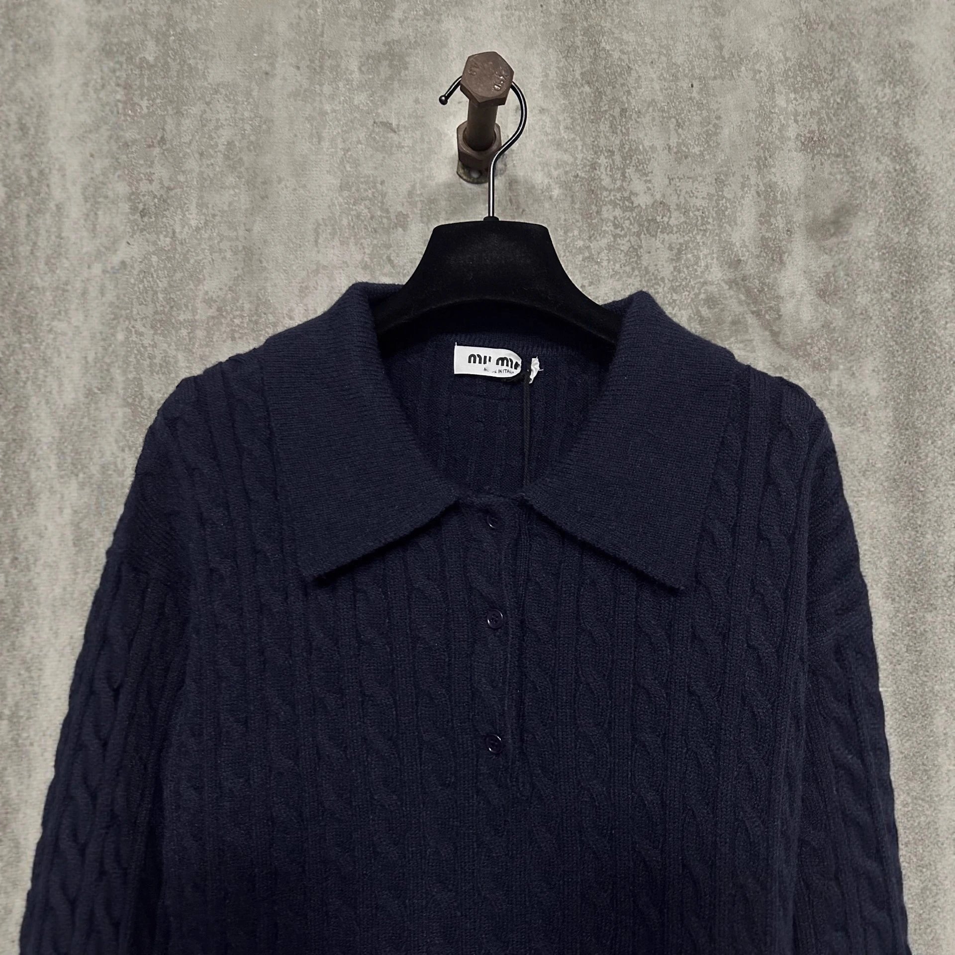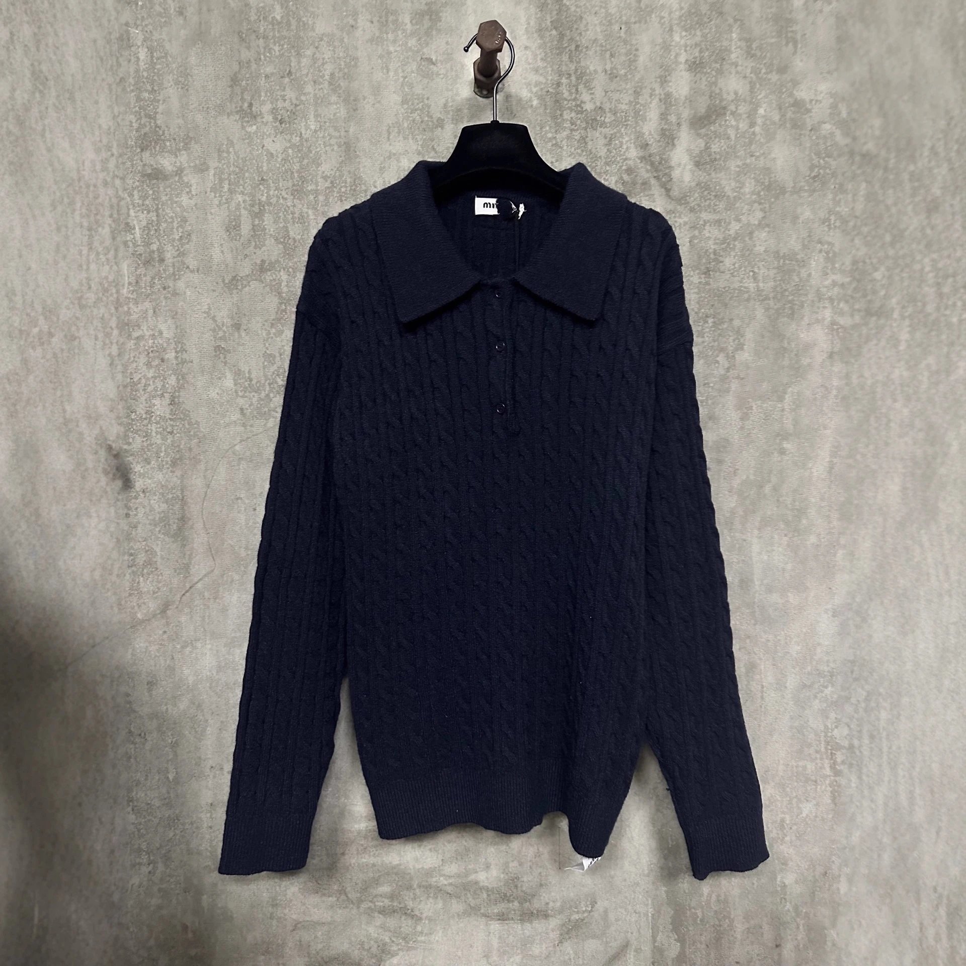 本MIU缪家小红书款羊绒POLO衫套头麻花毛衣男女