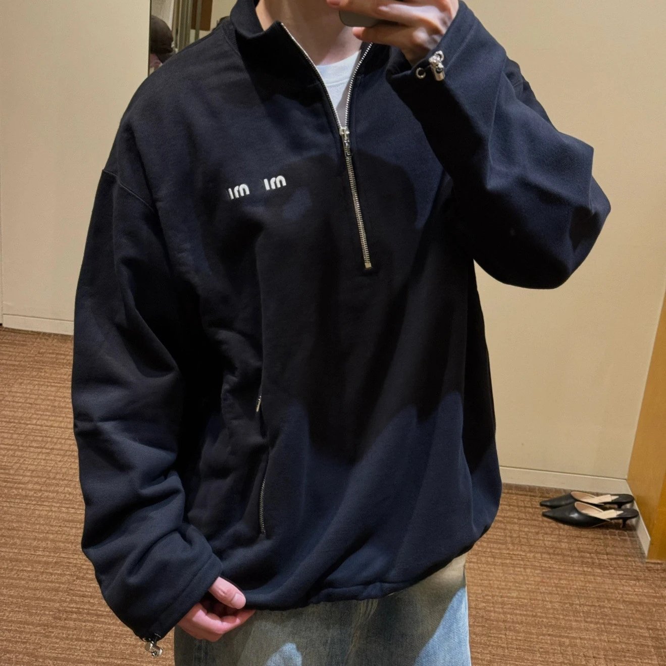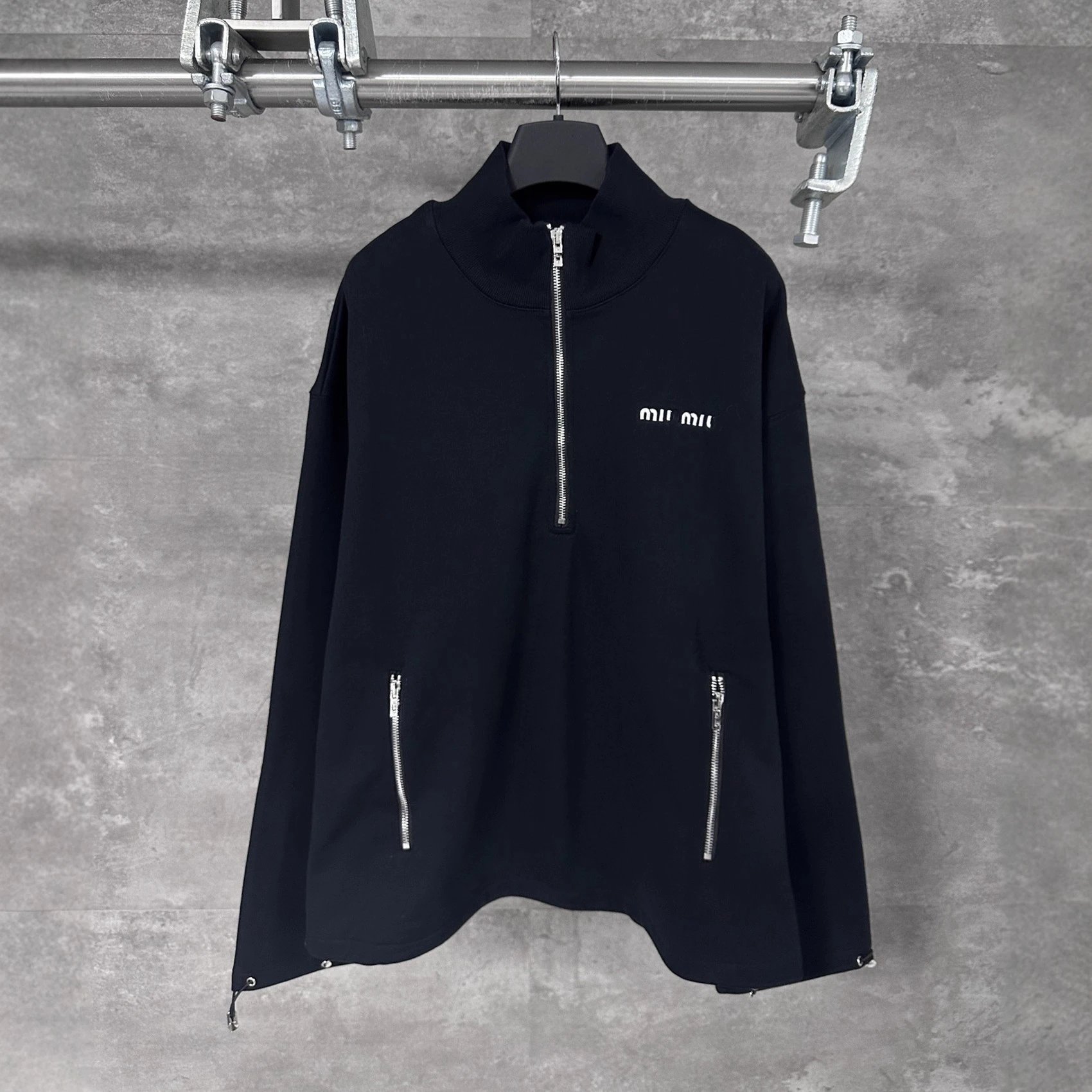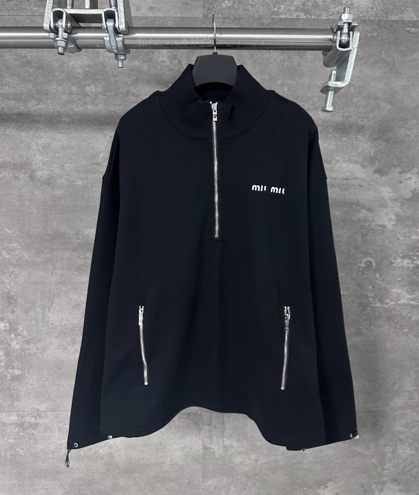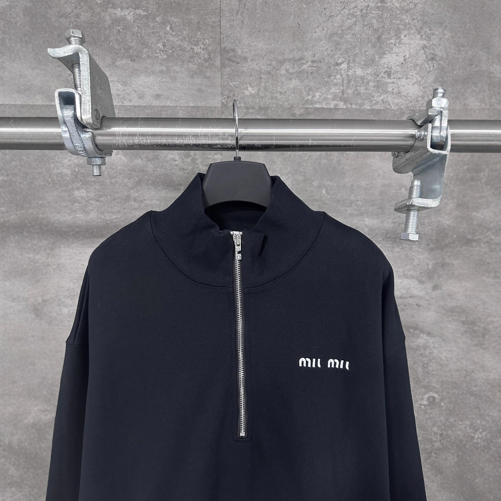 高品MIU缪家字母刺绣宽松半拉链POLO衫翻领卫衣男女