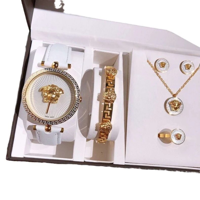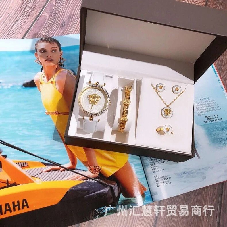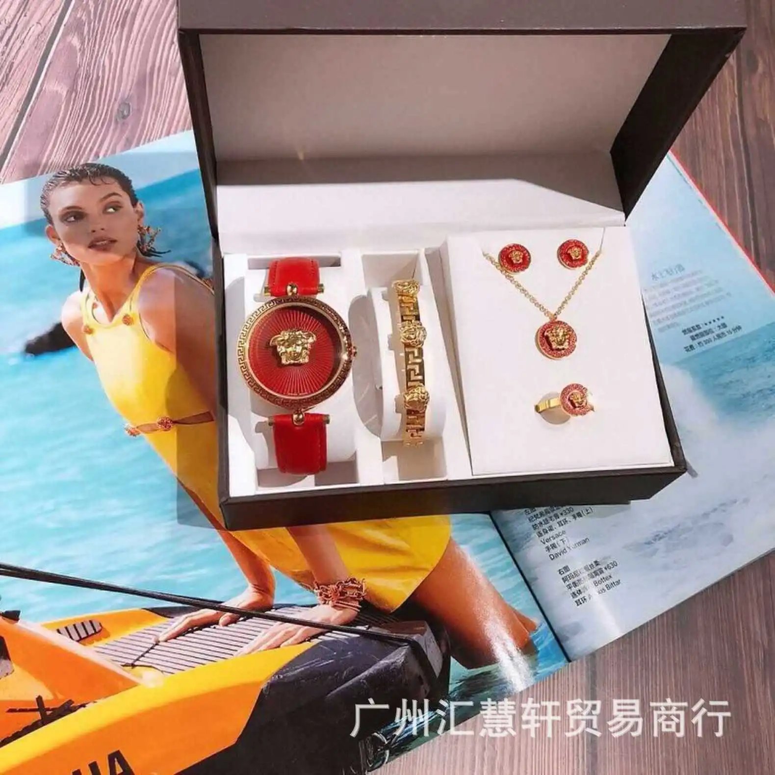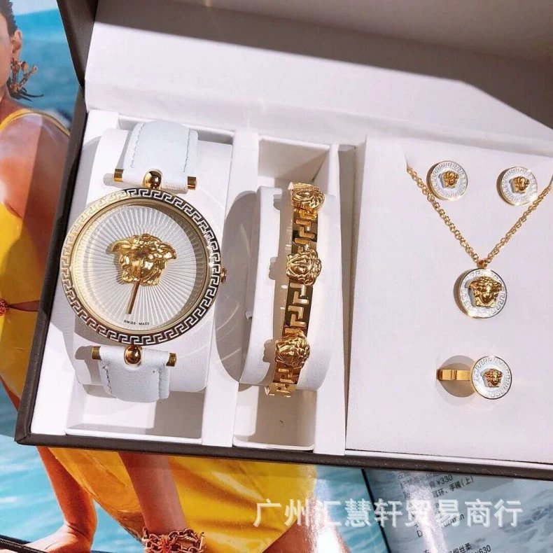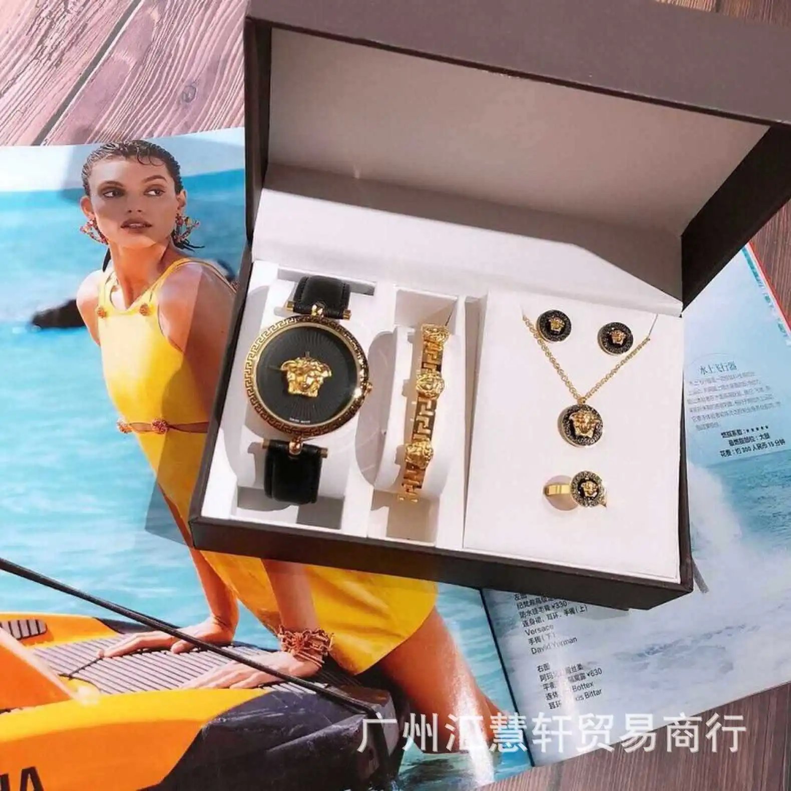 范家美杜莎头像五件套钛钢饰品圆盘石英女款手表套装