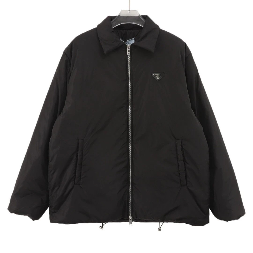 质秋冬新款P家后背三角标男女绒毛翻领夹棉夹克外套