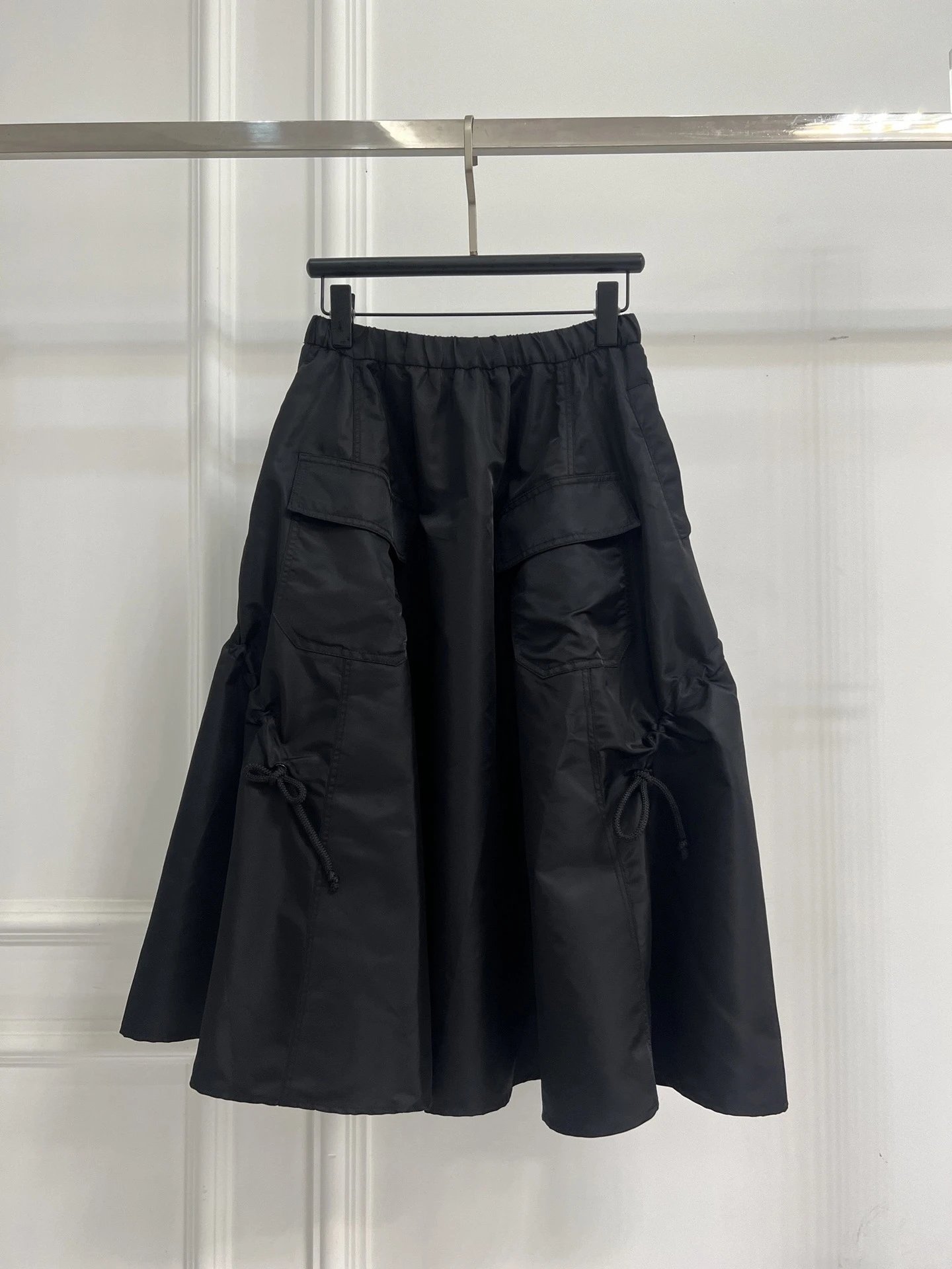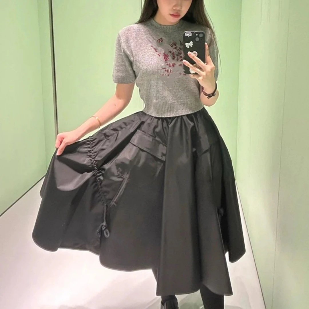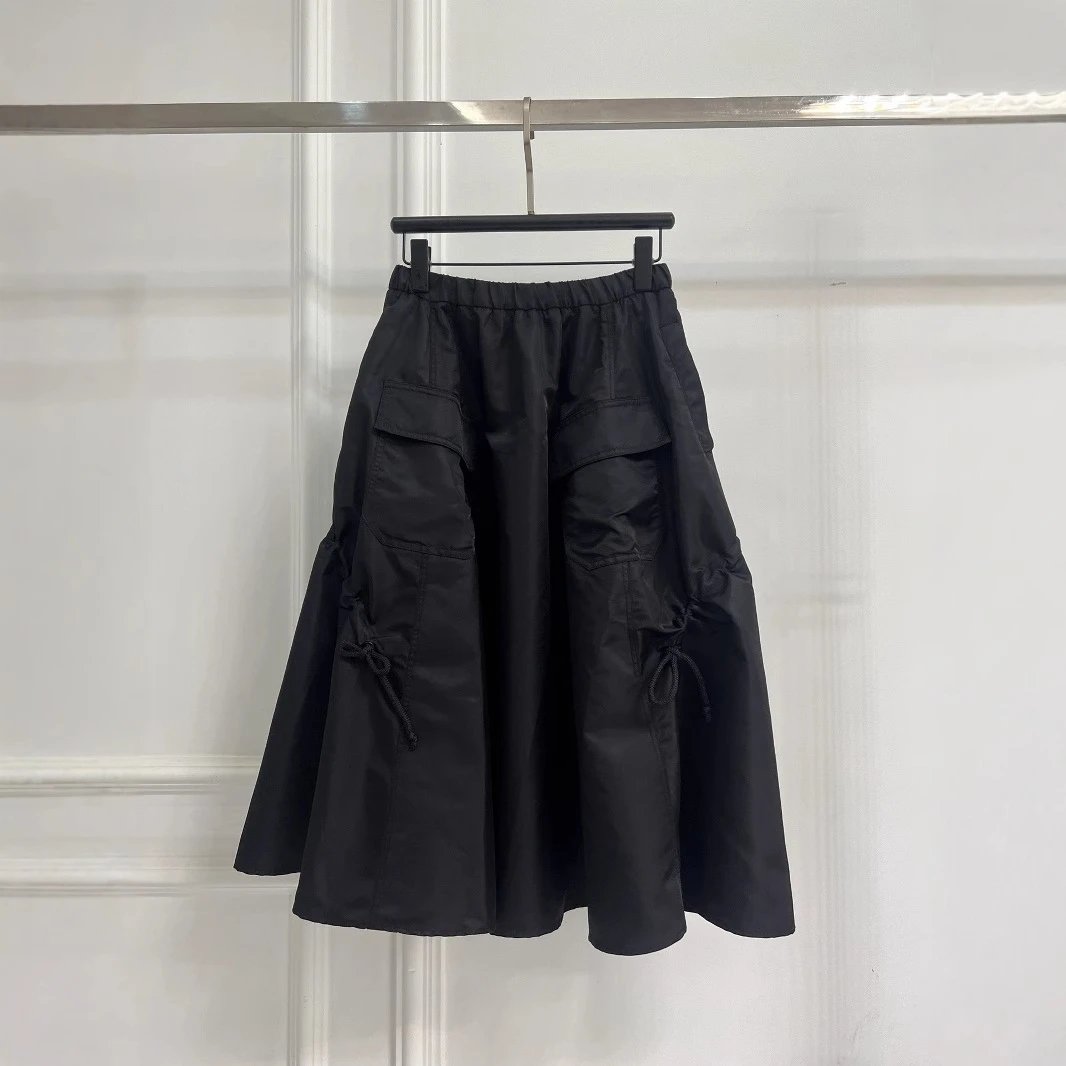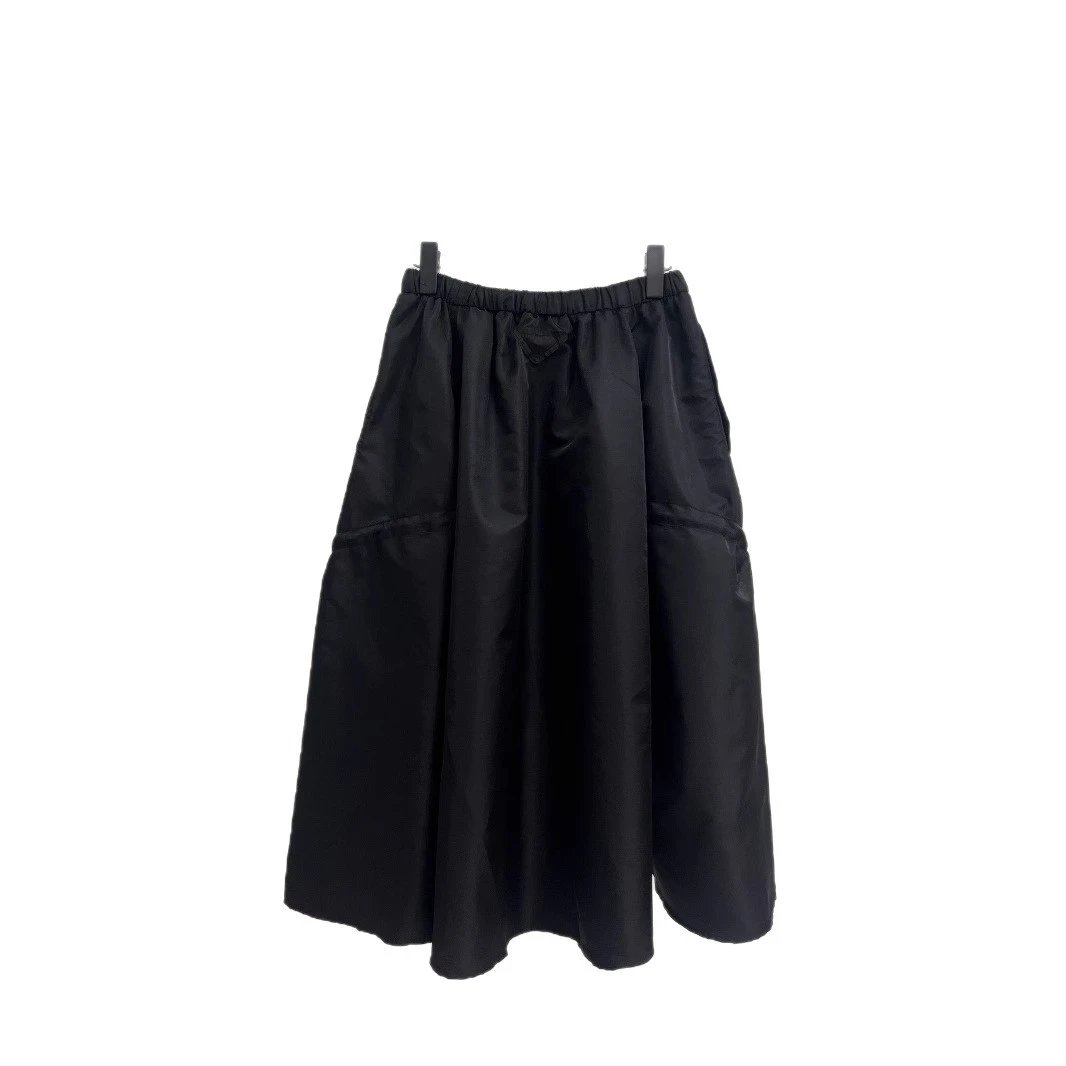 夏季新款P家黑色松紧腰宽松通勤长款工装休闲半身裙