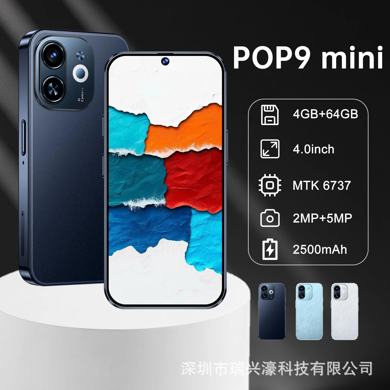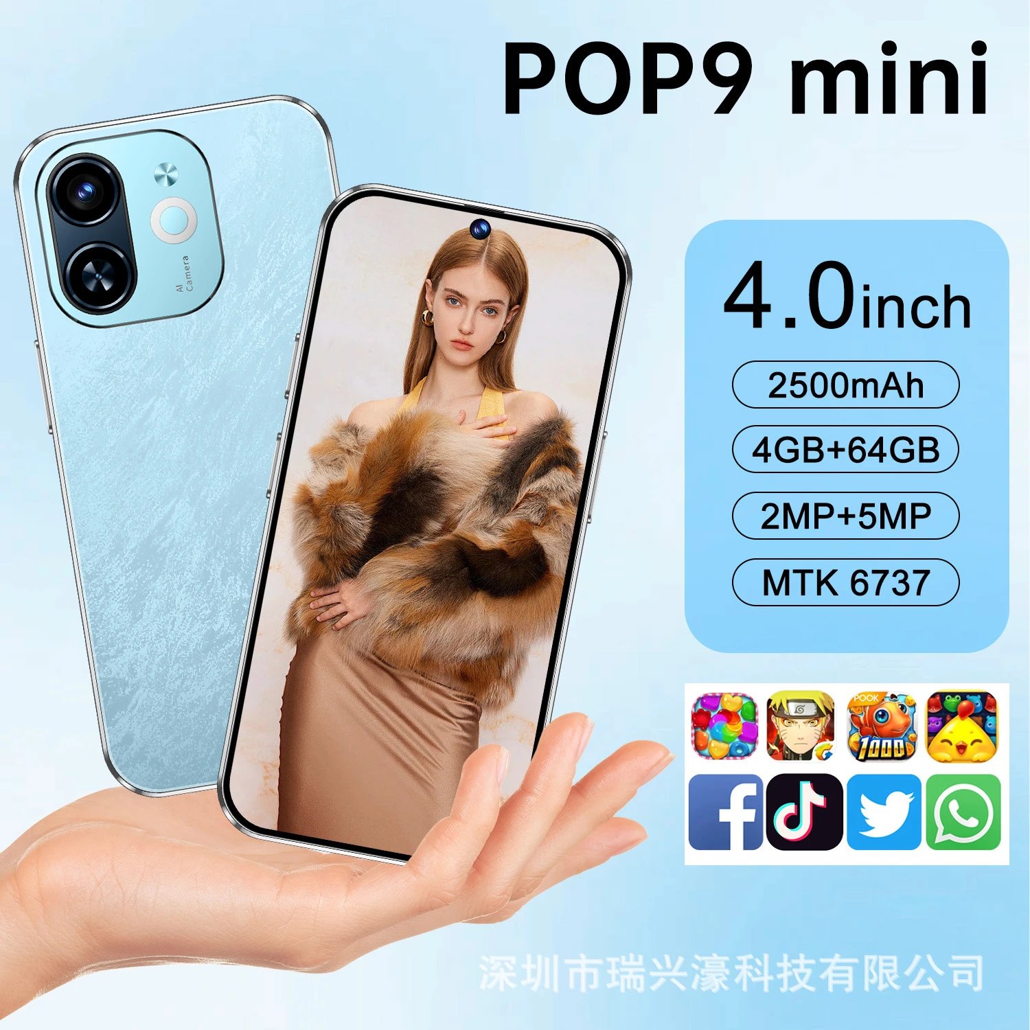 新款POP 9 Mini手机4+64GB穿孔屏4.0寸一体卡片机TK热