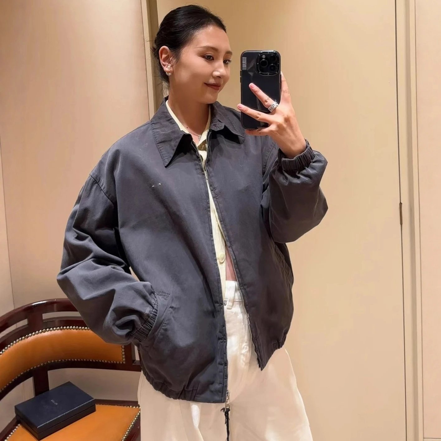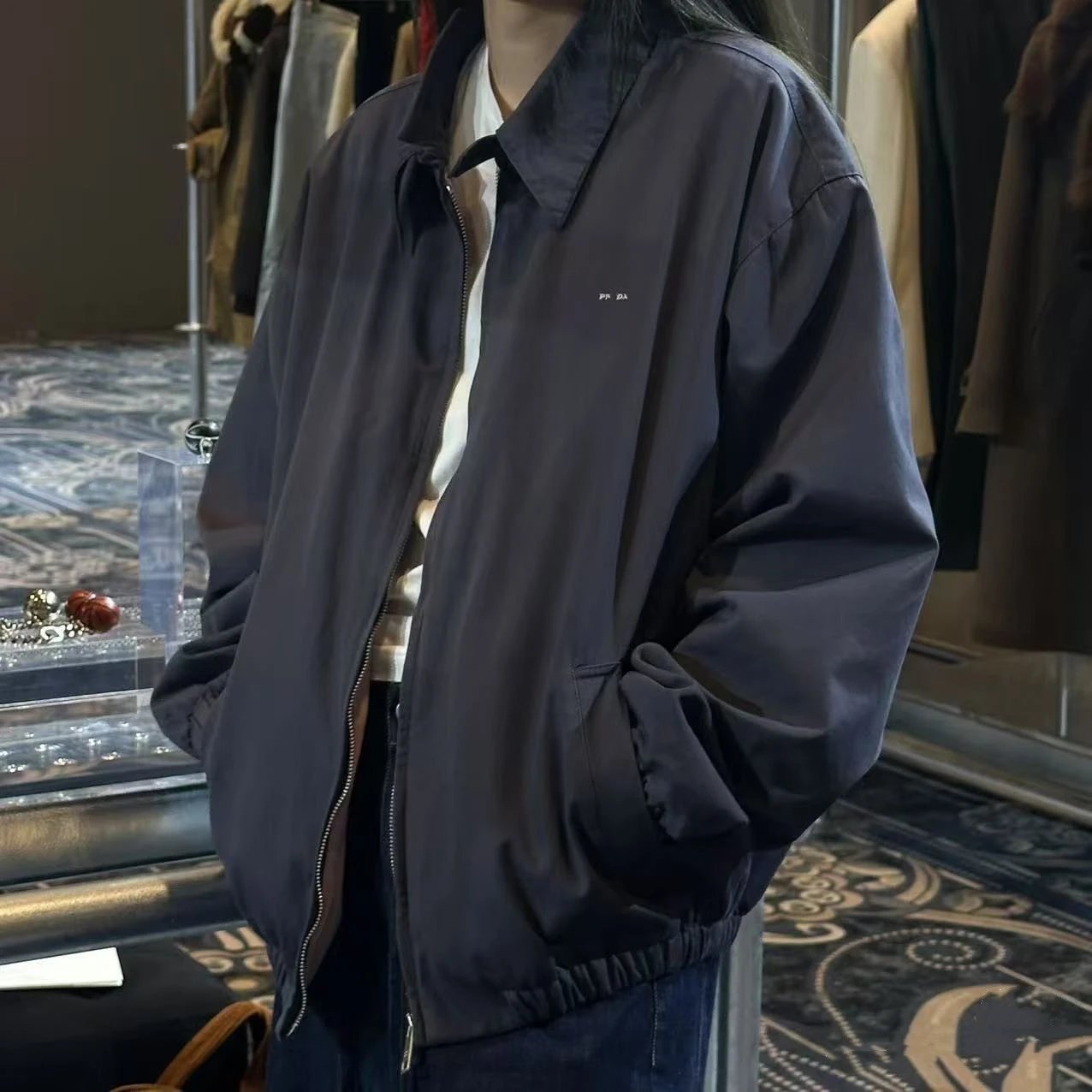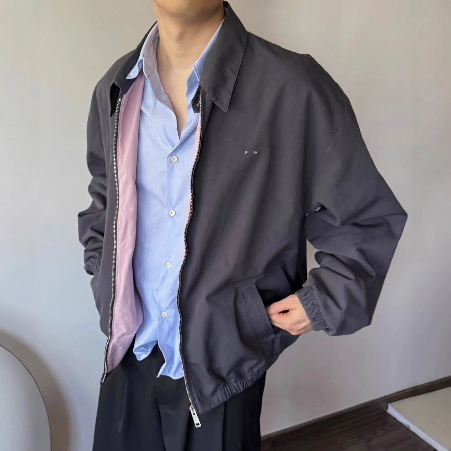 P家小字母logo双面双色拼色夹克棉质翻领夹克外套