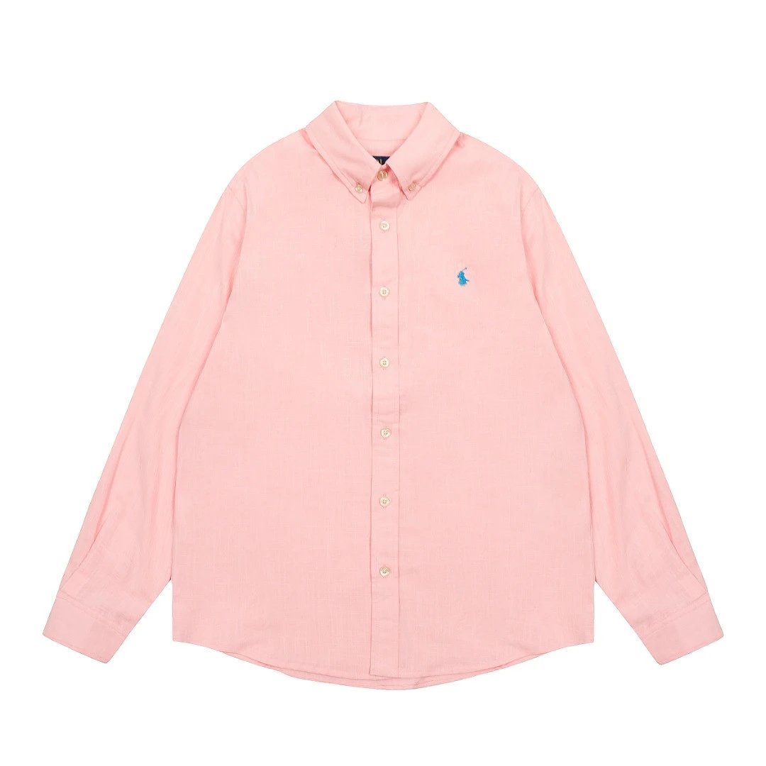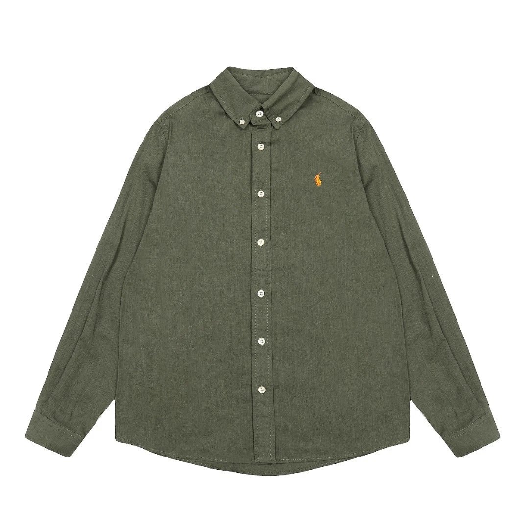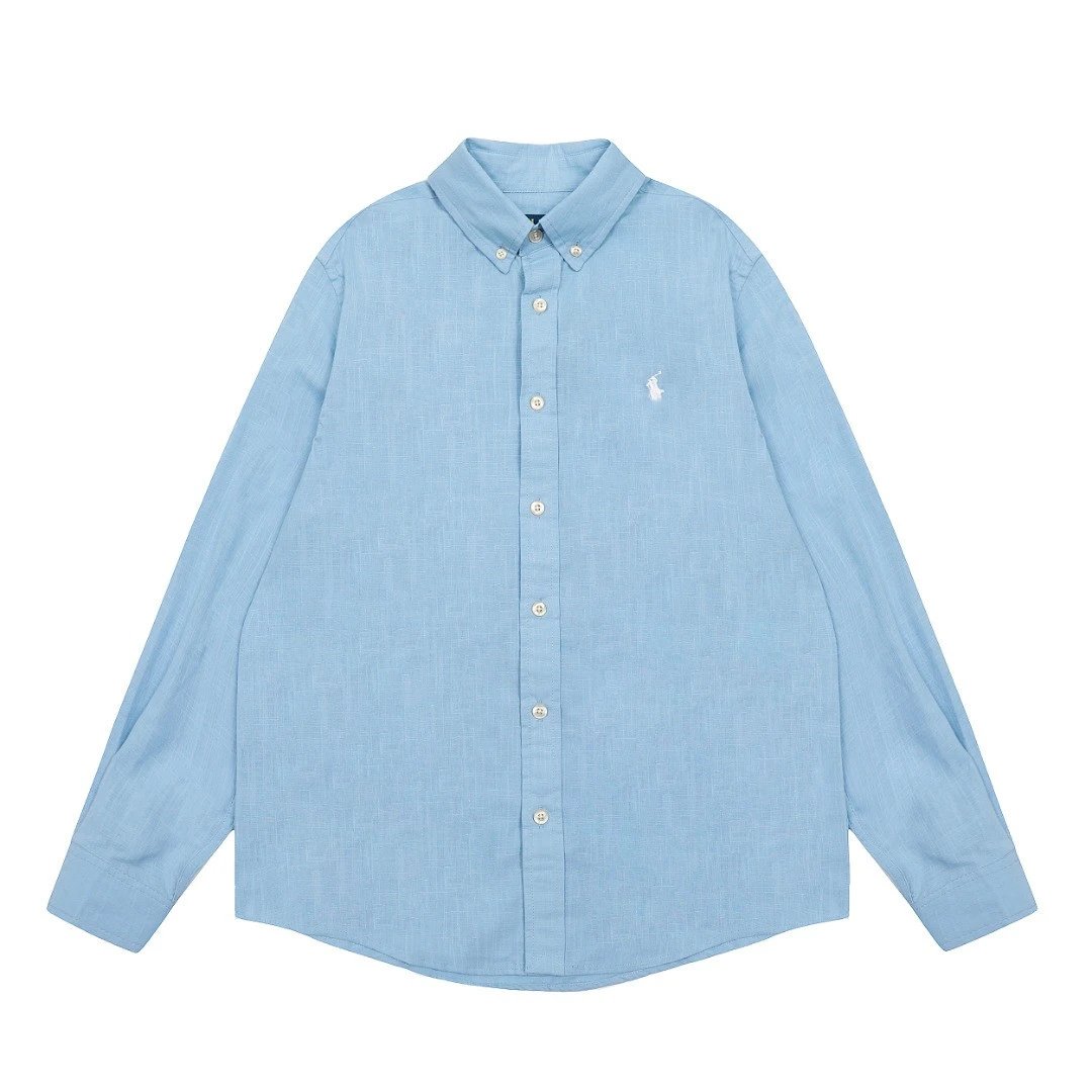 RL拉夫小马亚麻纯色Logo刺绣排扣翻领经典长袖休闲衬衫男女