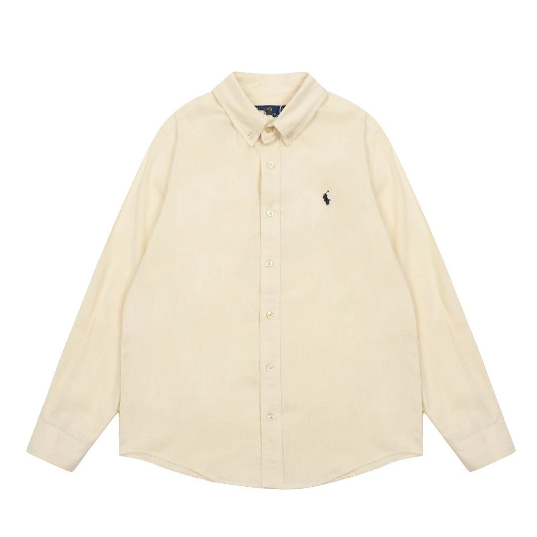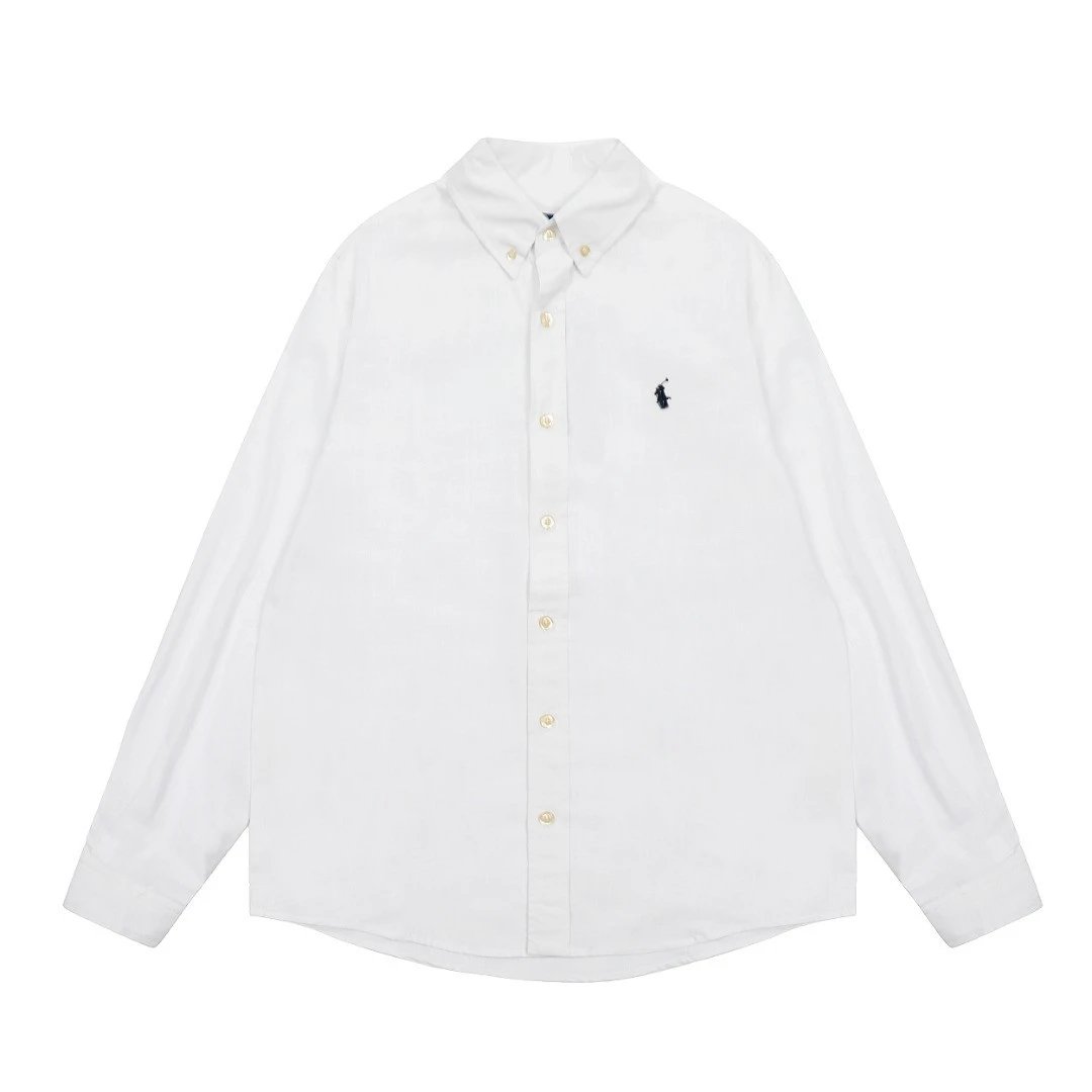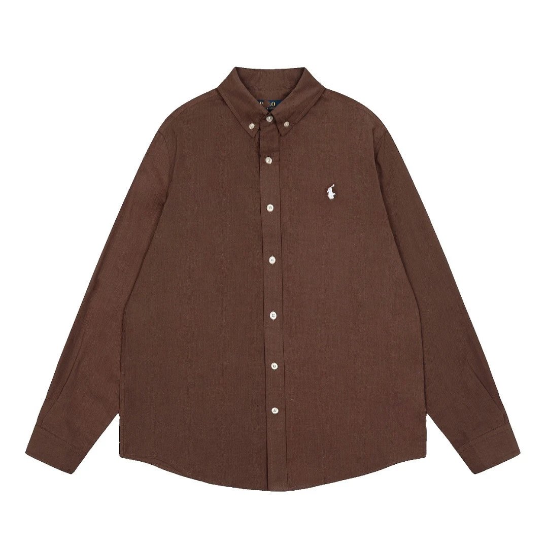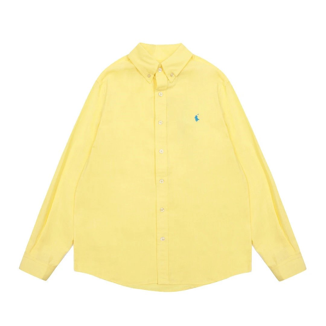 RL拉夫小马亚麻纯色Logo刺绣排扣翻领经典长袖休闲衬衫男女