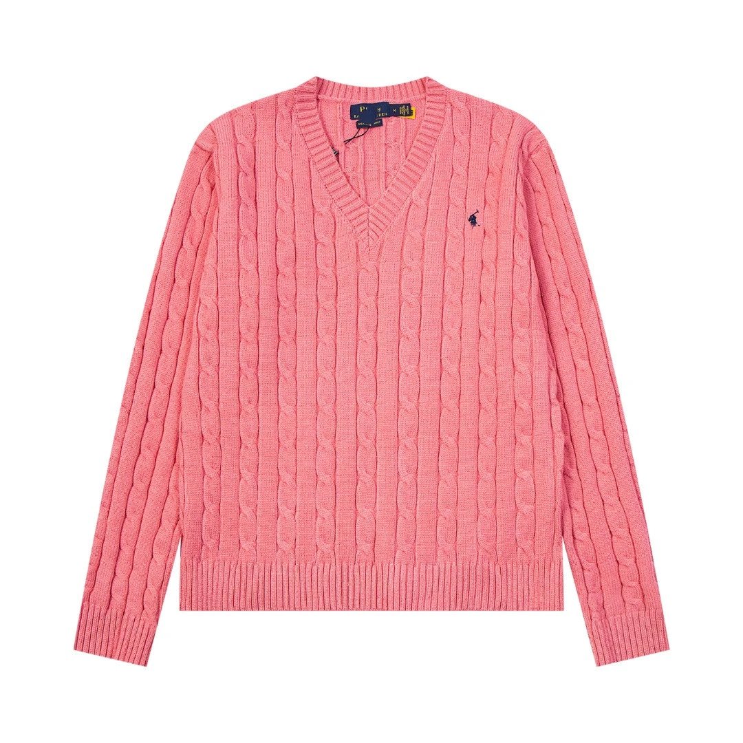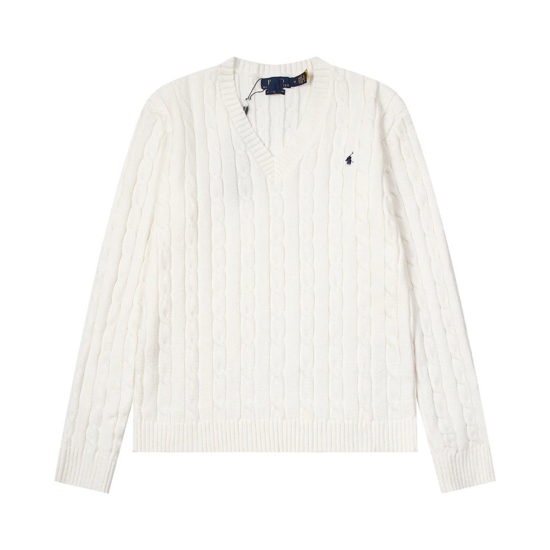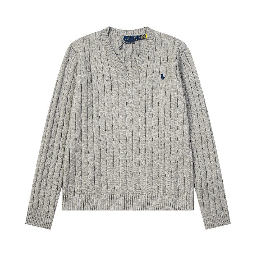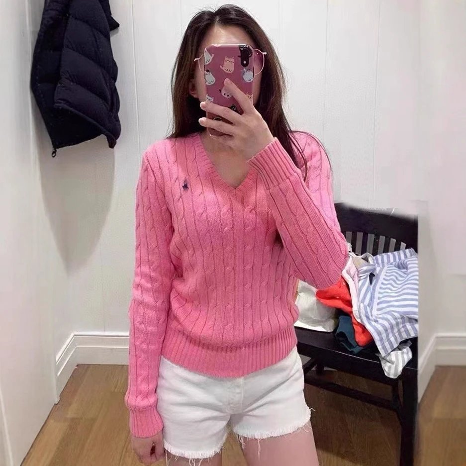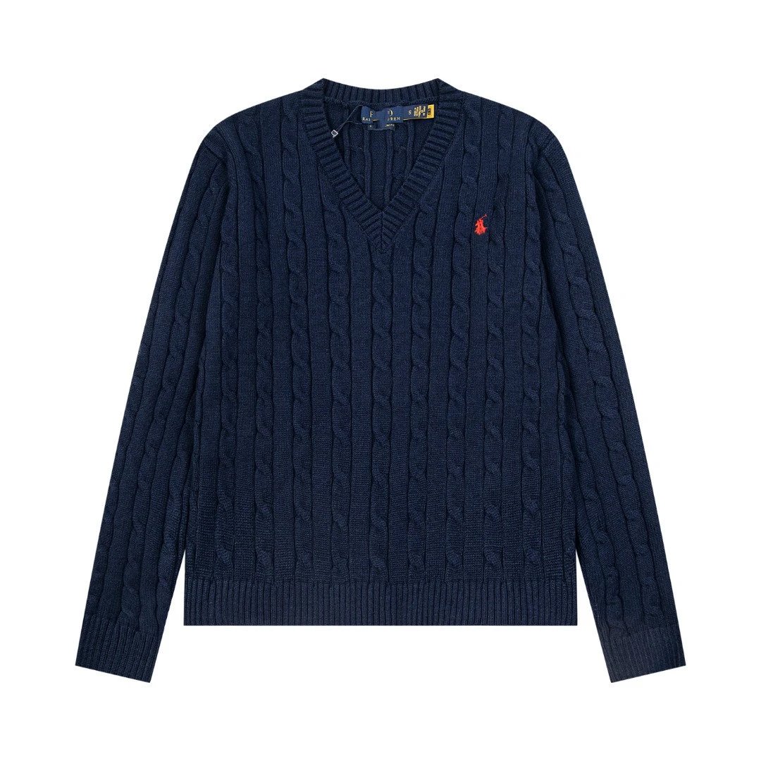 RL拉夫小马经典小标刺绣绞花纹麻花纽绳V领长袖套头针织毛衣
