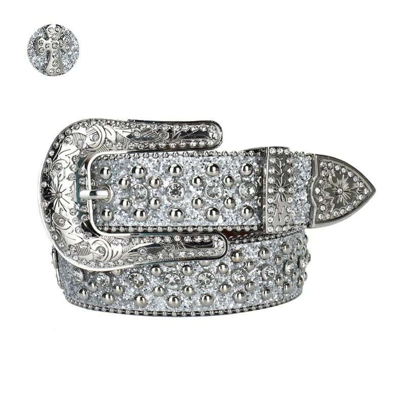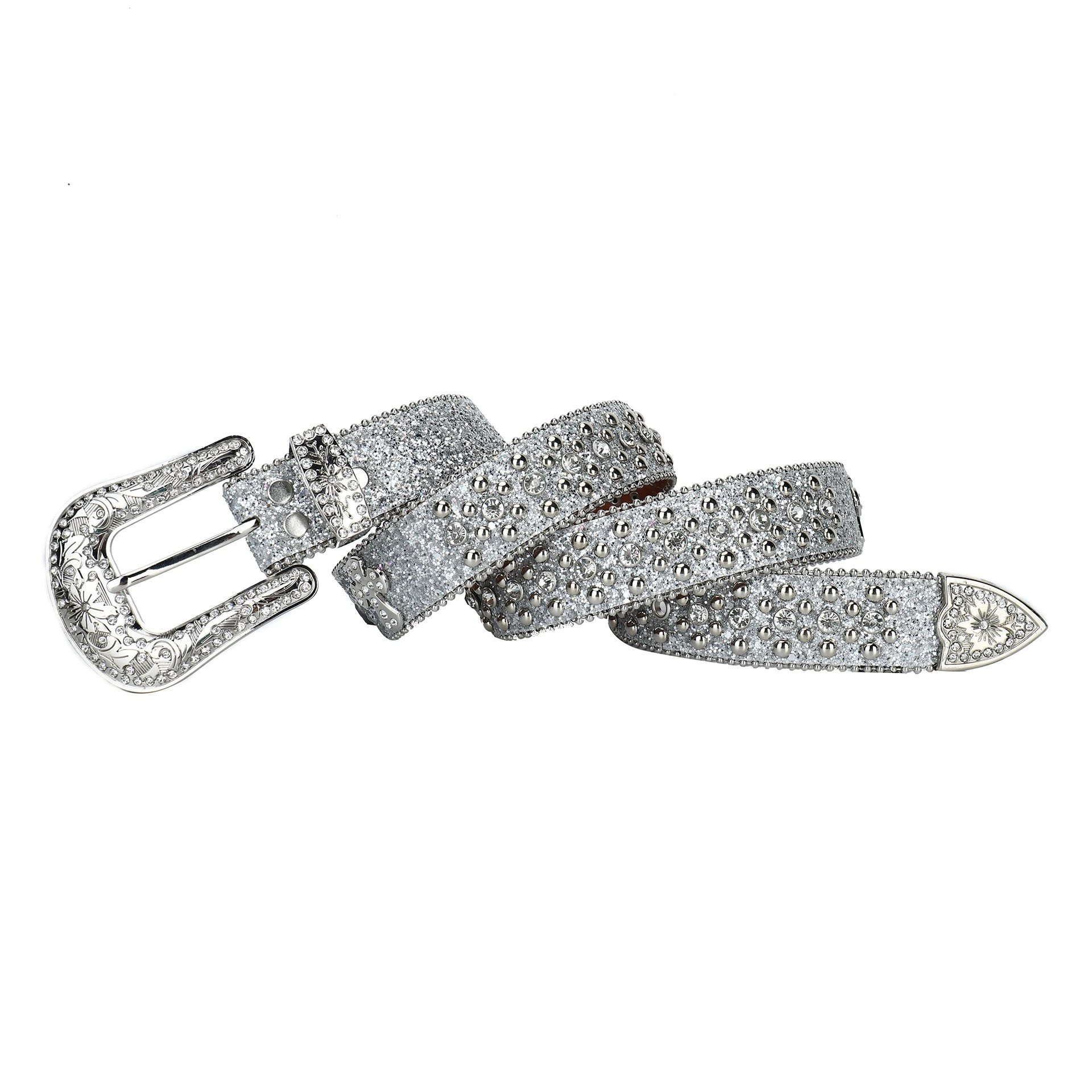 欧美跨境银色闪光水钻腰带女式镶嵌满钻时尚个性潮流女式腰带批发