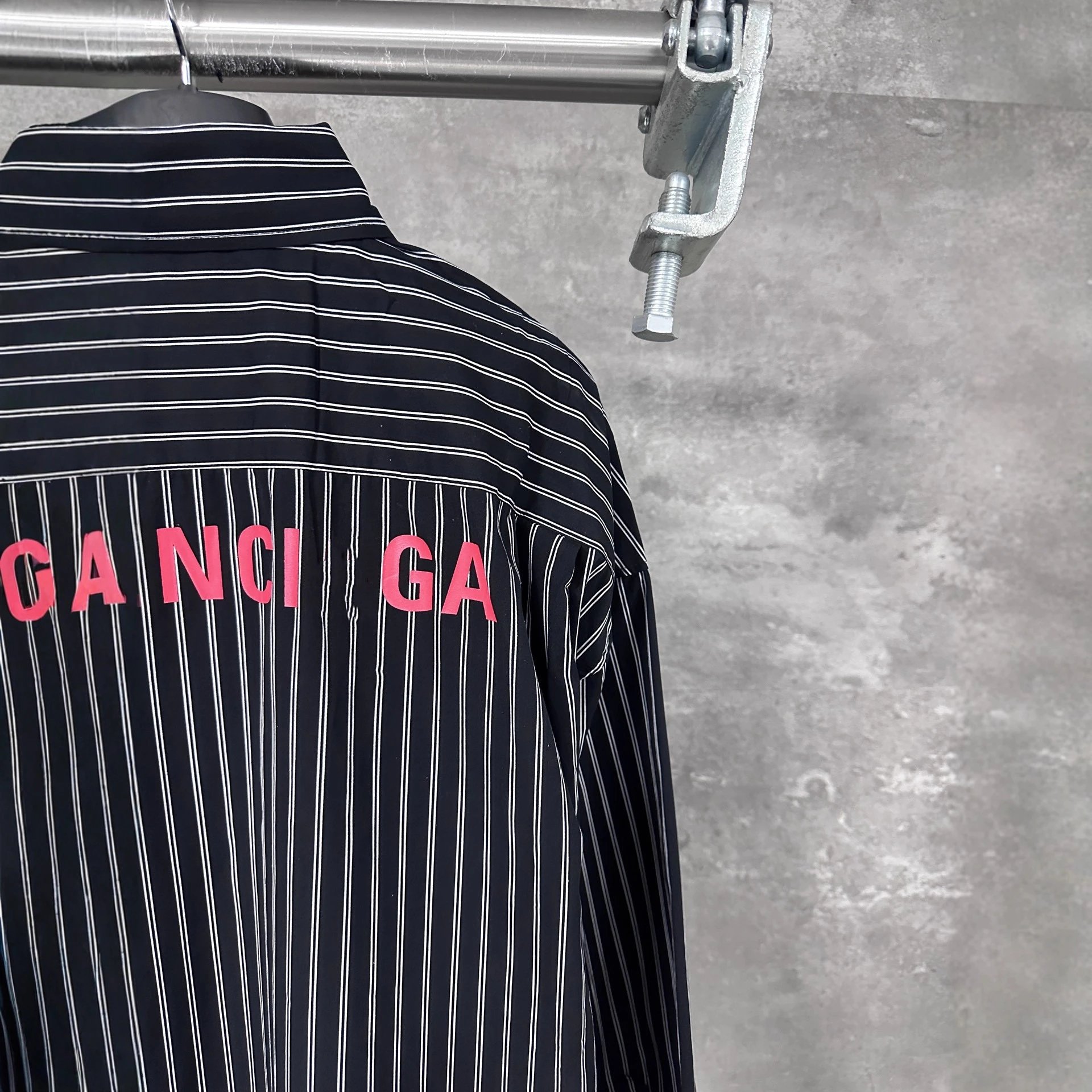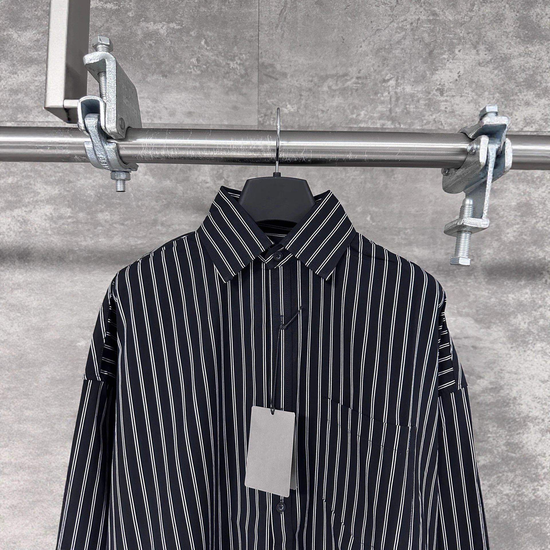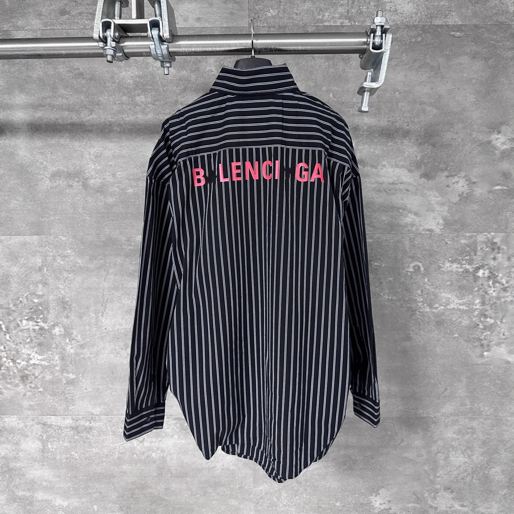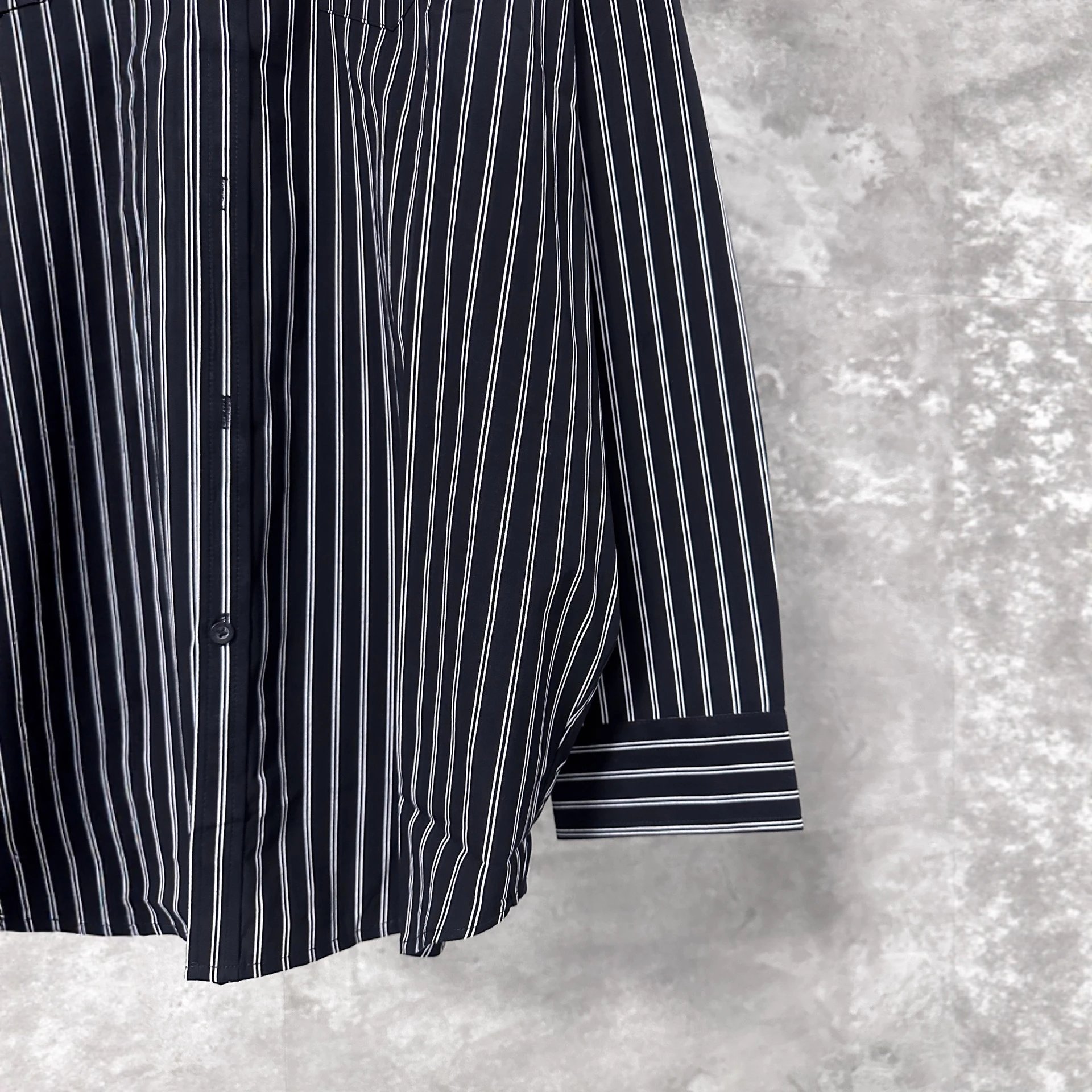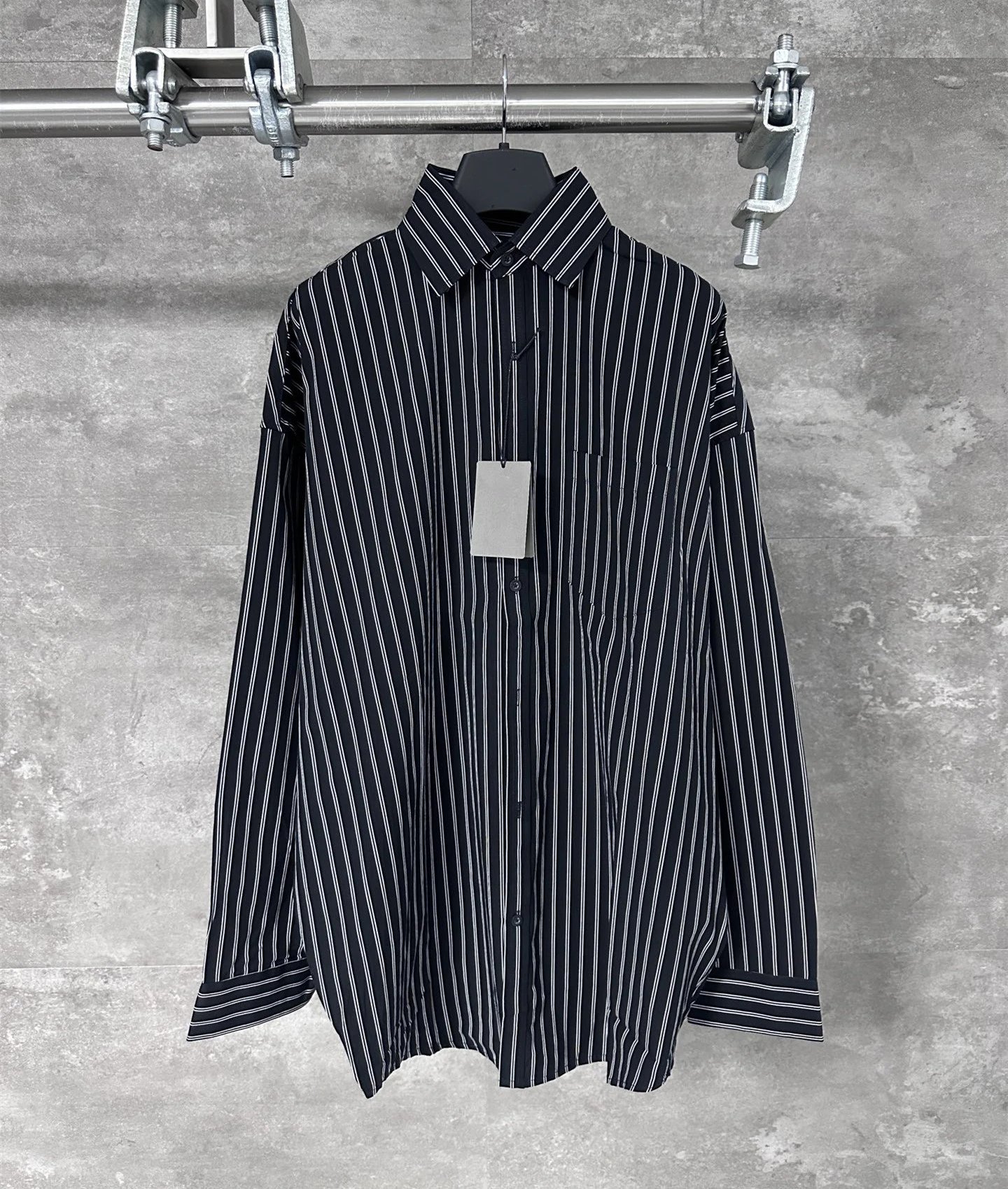 SS25早秋新款巴黎B家黑白棉府锦缎条纹背后字母衬衫男女