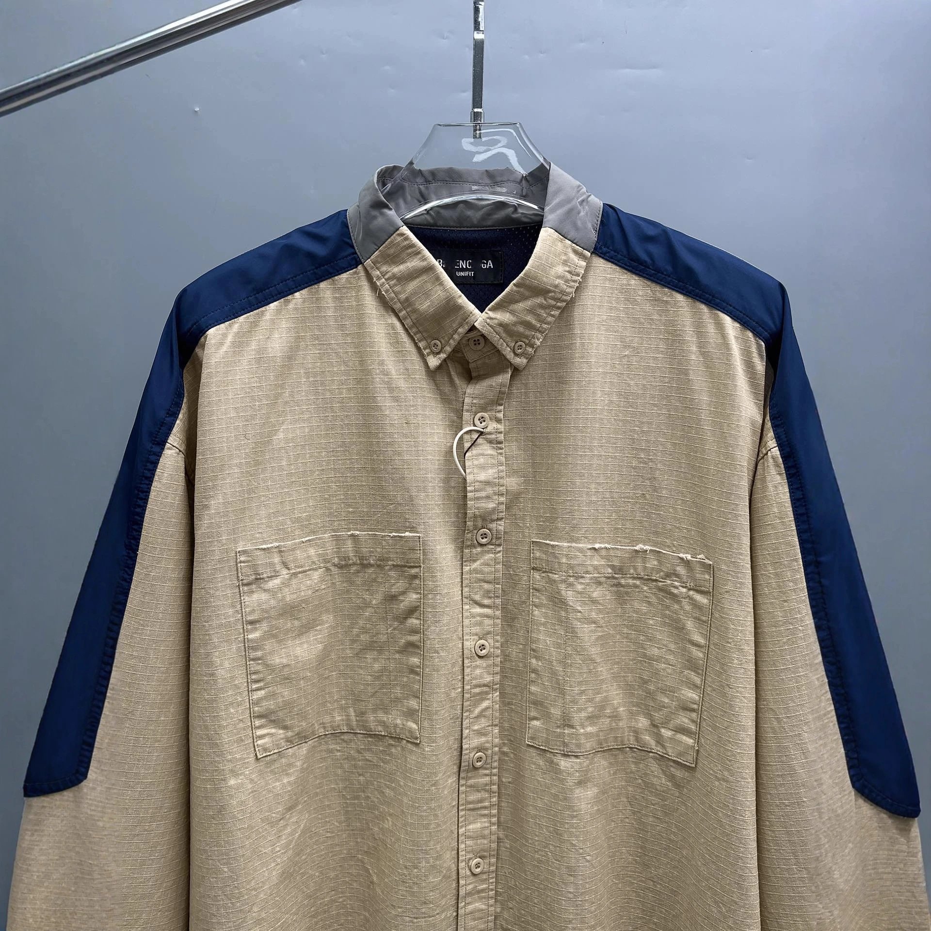 SS25早秋新款巴黎B家重工艺水洗磨破工艺拼接衬衫风衣男女