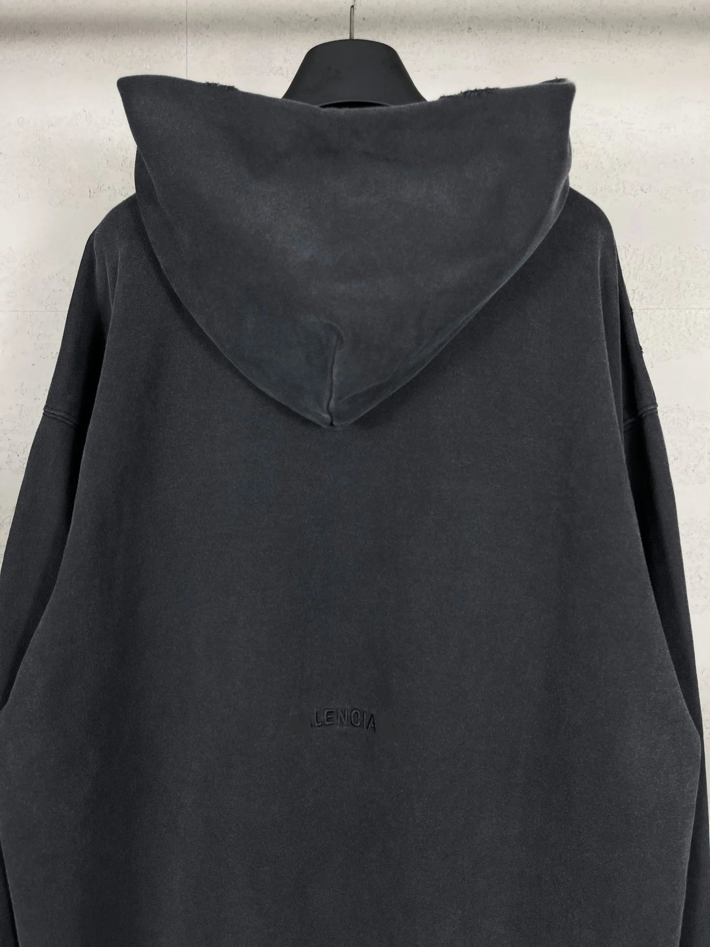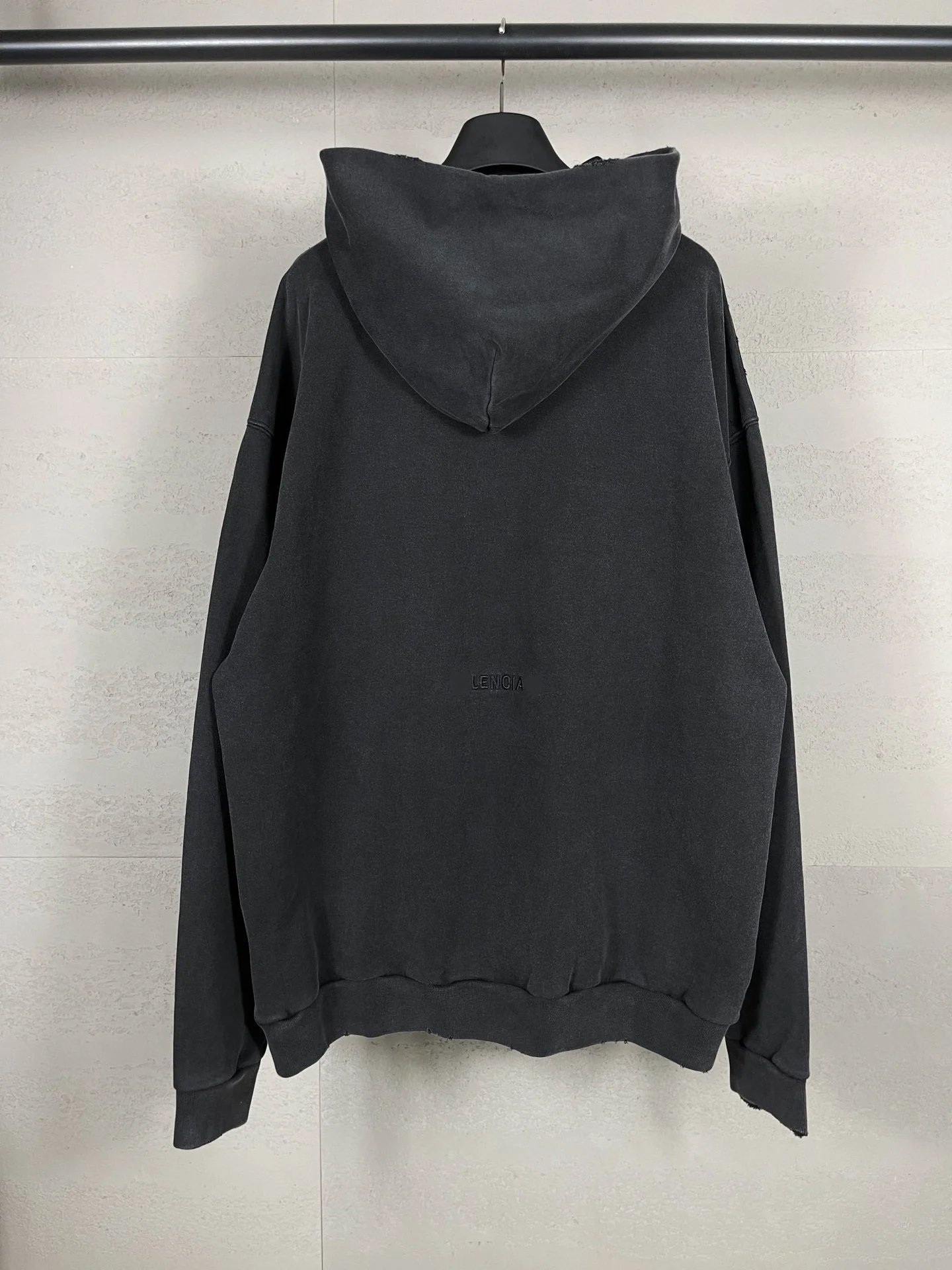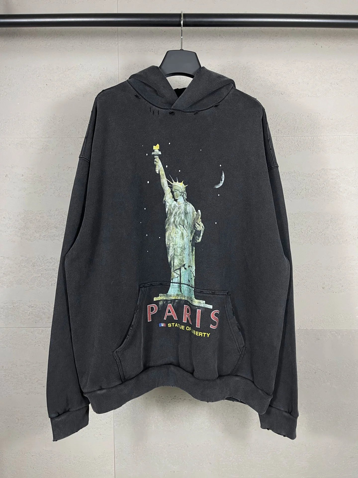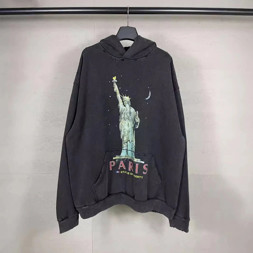 巴黎走秀款女神水洗做旧磨烂连帽套头卫衣帽衫男女款情侣