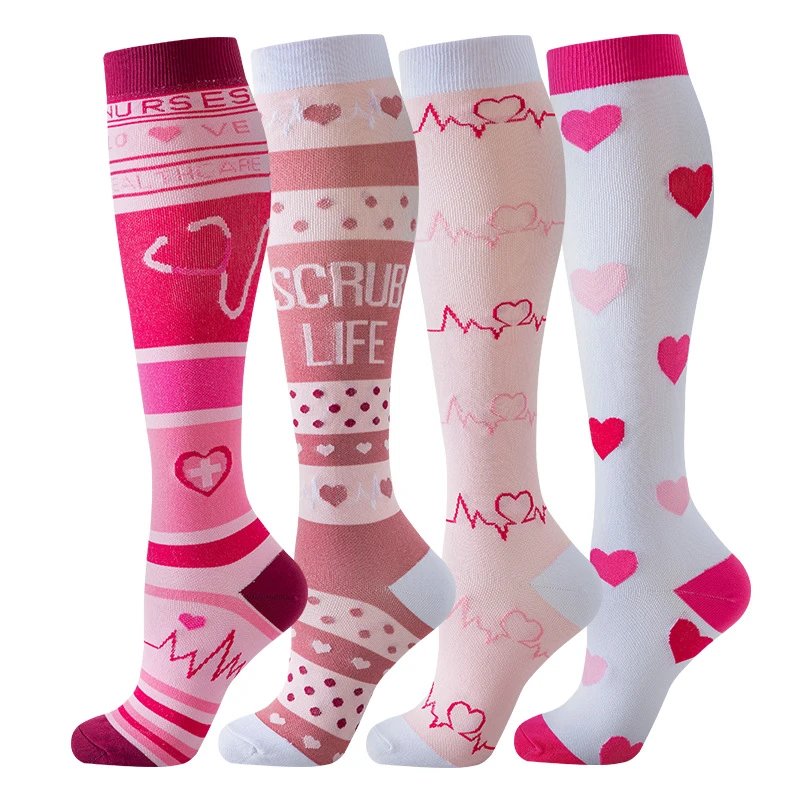 跨境新品医疗主题美腿压力袜专业弹力运动骑行吸汗护士小腿袜压缩