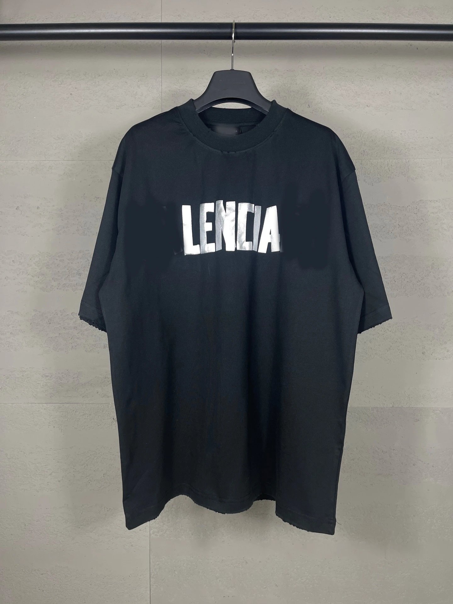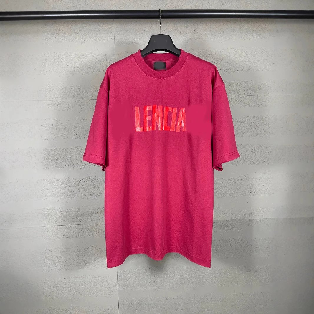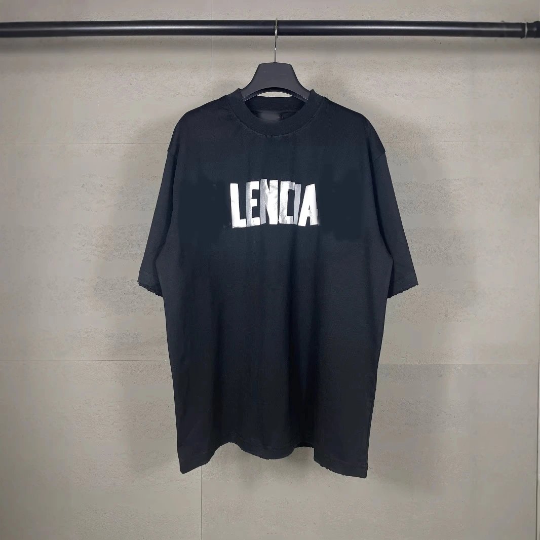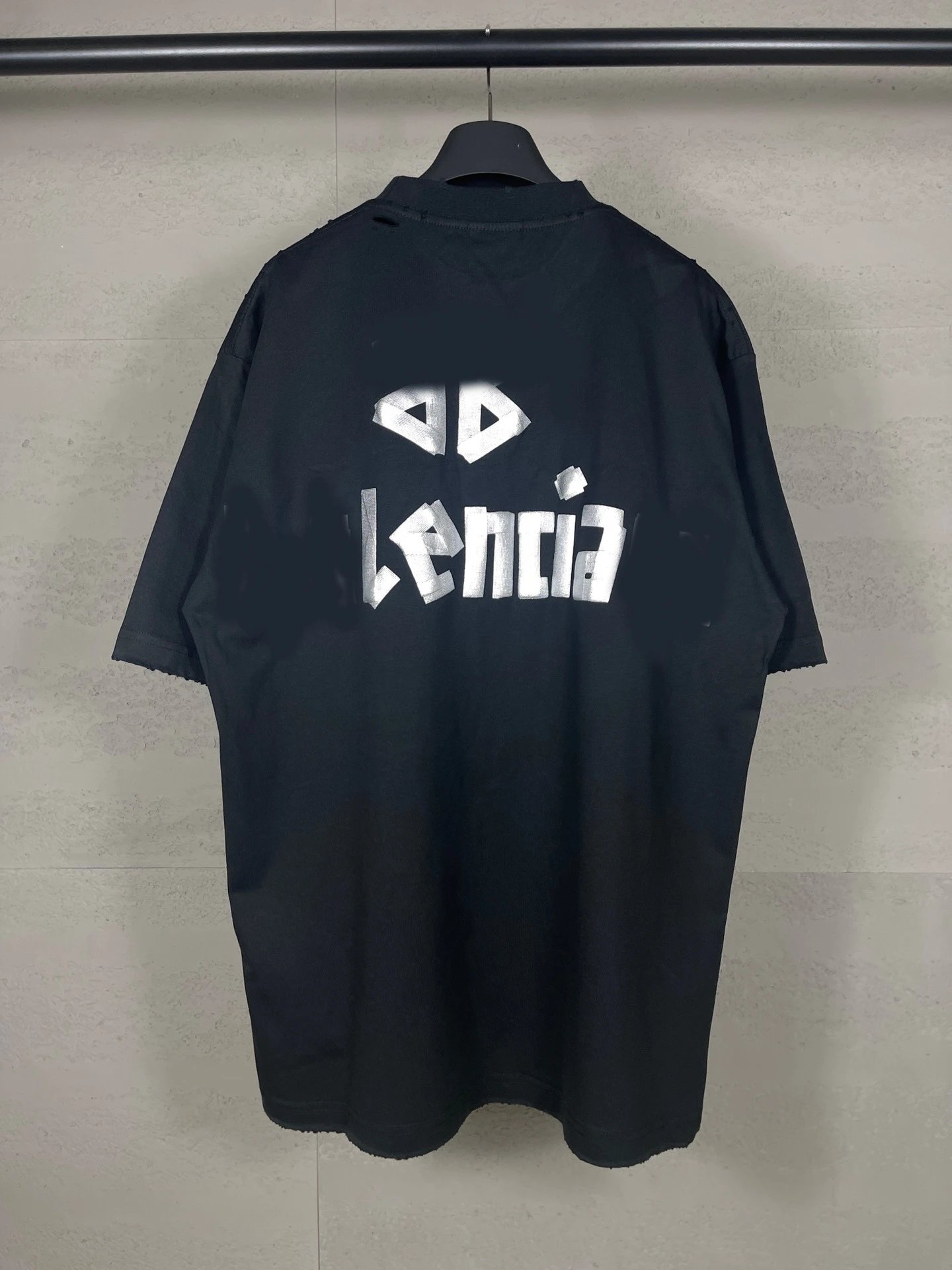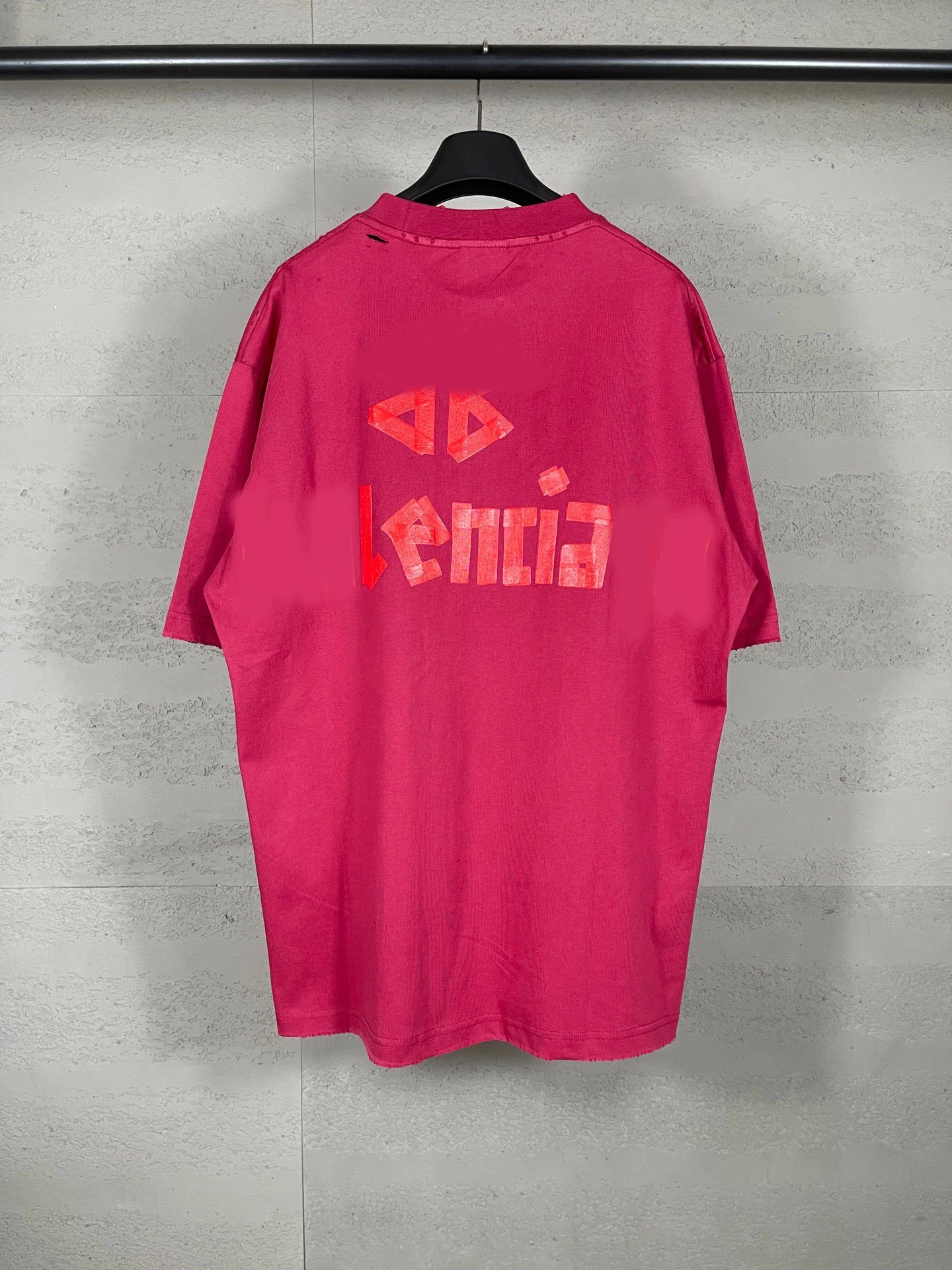 潮牌巴黎短美纹纸胶带印花成衣水洗磨烂做旧短袖T恤水洗磨烂半袖t