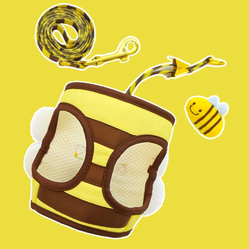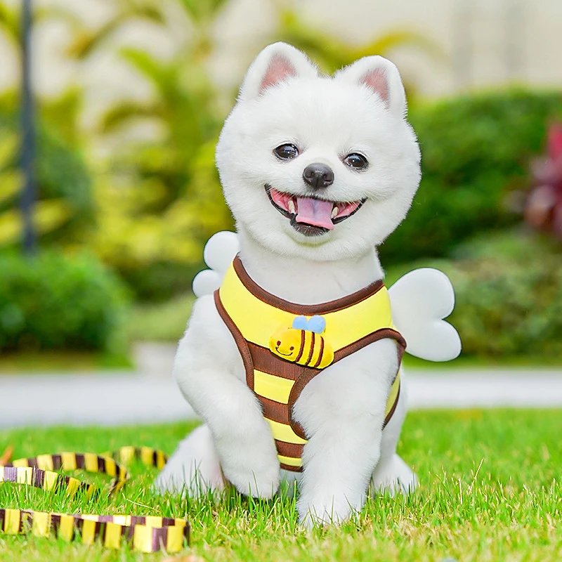 小蜜蜂狗狗胸背带可爱卡通宠物背心式胸背带户外遛狗牵引绳小型犬
