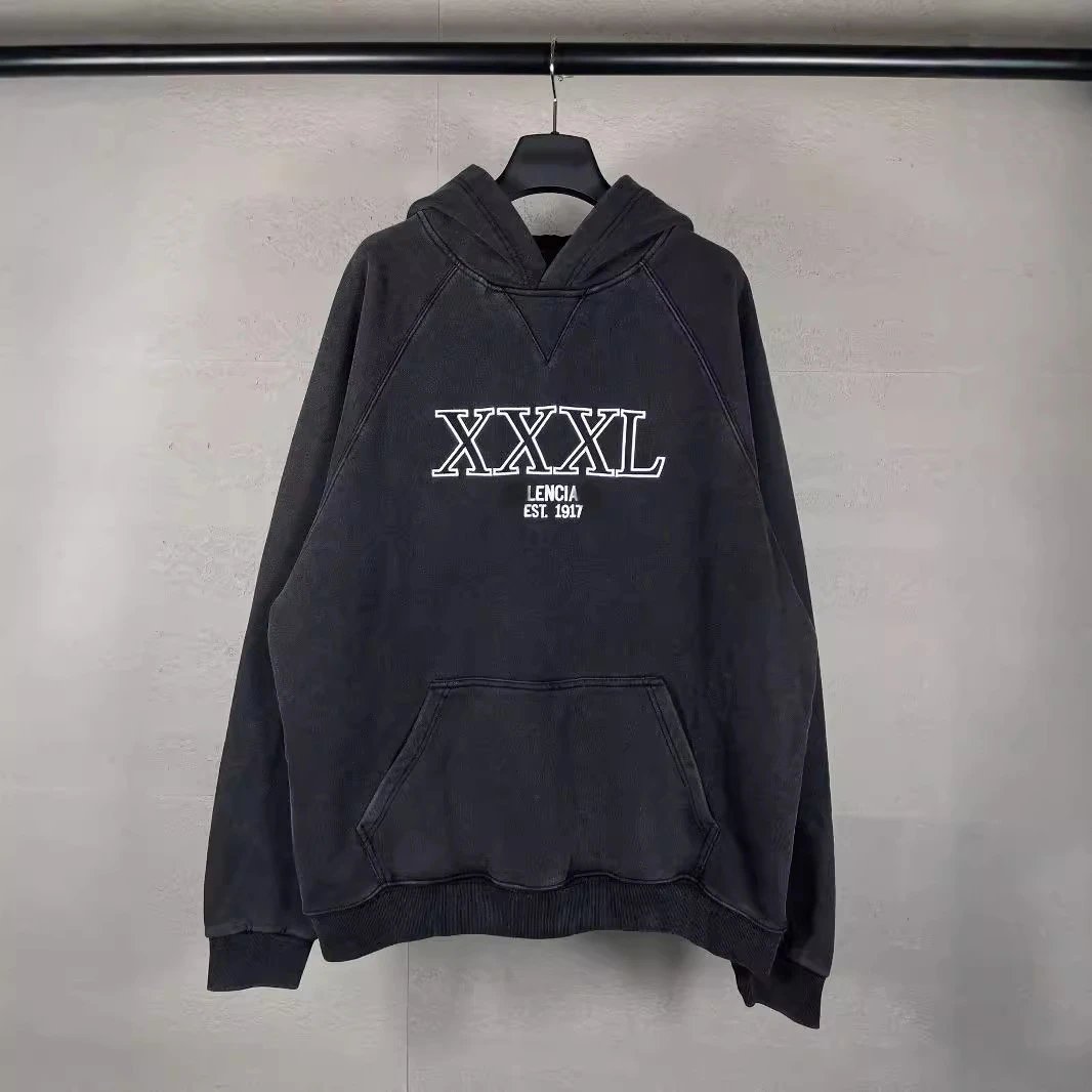 巴黎胸前刺绣XXXL经典字母慵懒宽松连帽校园情侣款长袖百搭ins