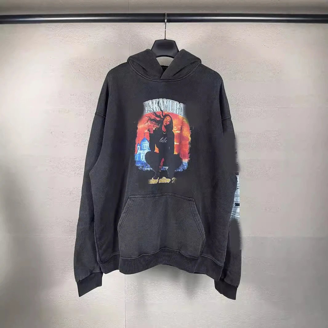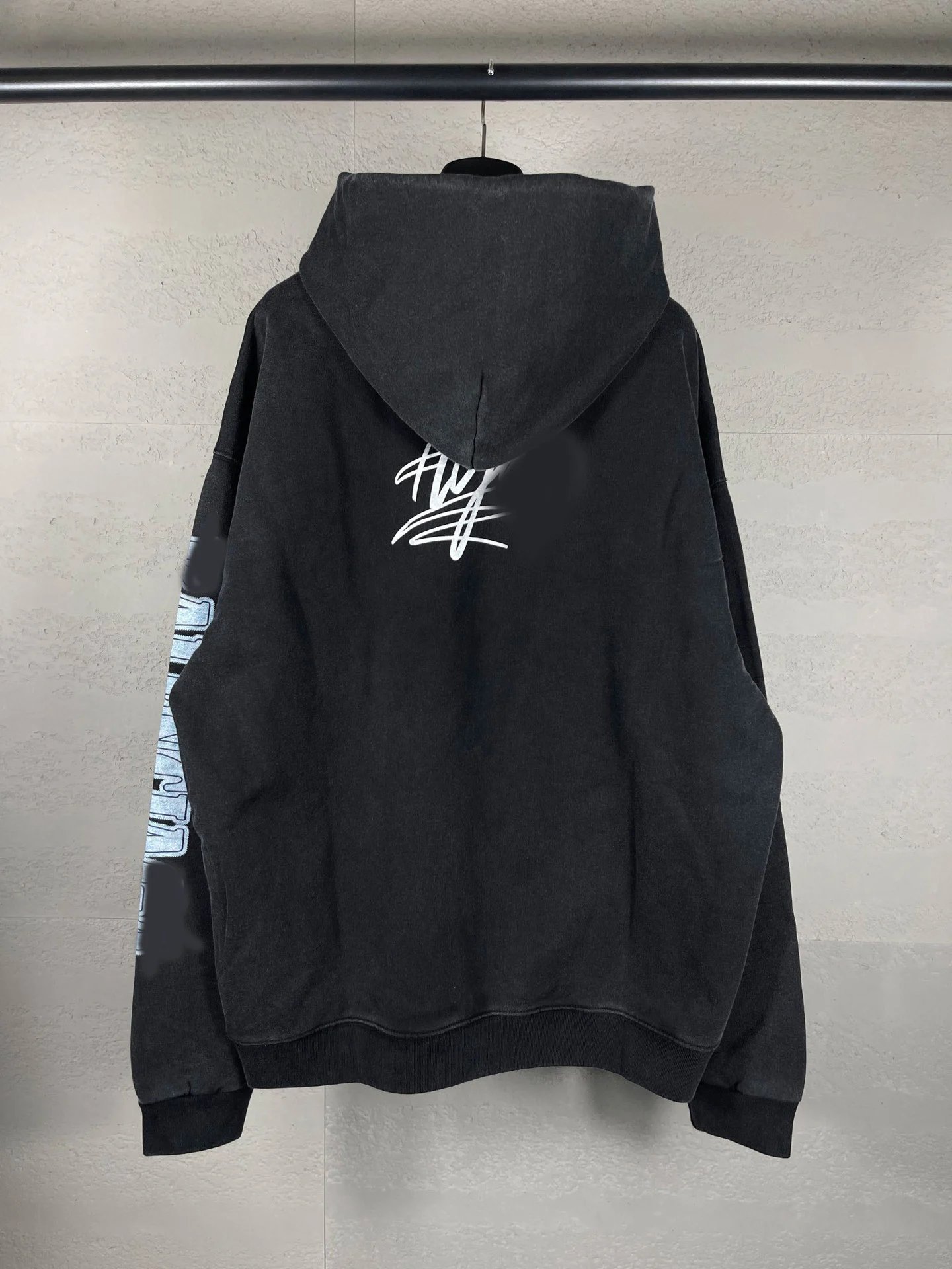 巴黎联名aya歌星乐队重工艺水洗做旧连帽卫衣男女款宽松卫衣帽衫