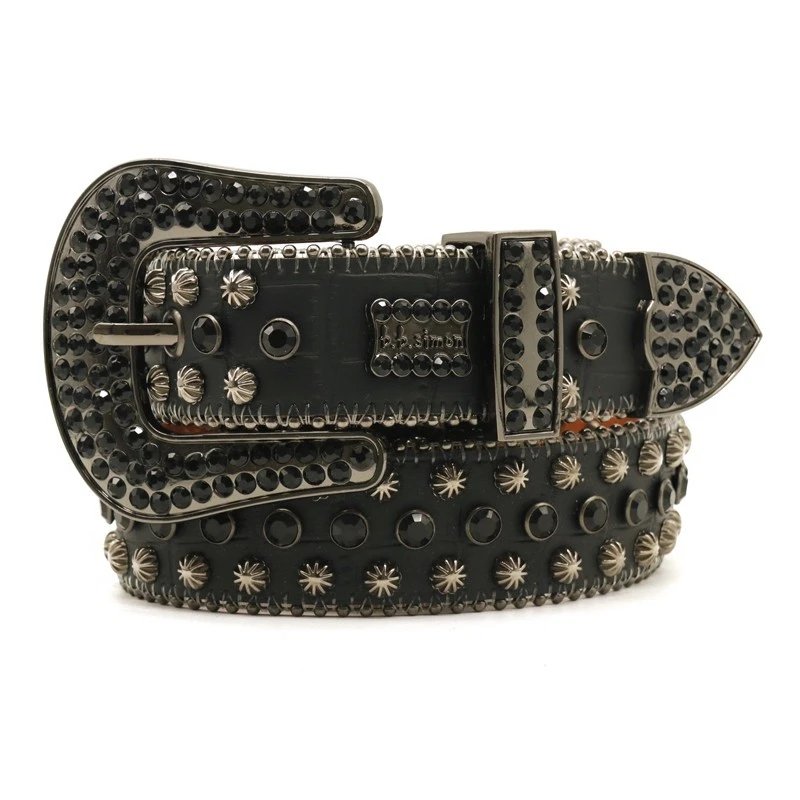 水钻腰带皮带男铆钉镶嵌合金针扣个性嘻哈朋克暗黑风厂家直售批发
