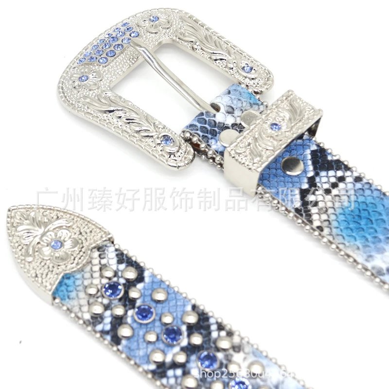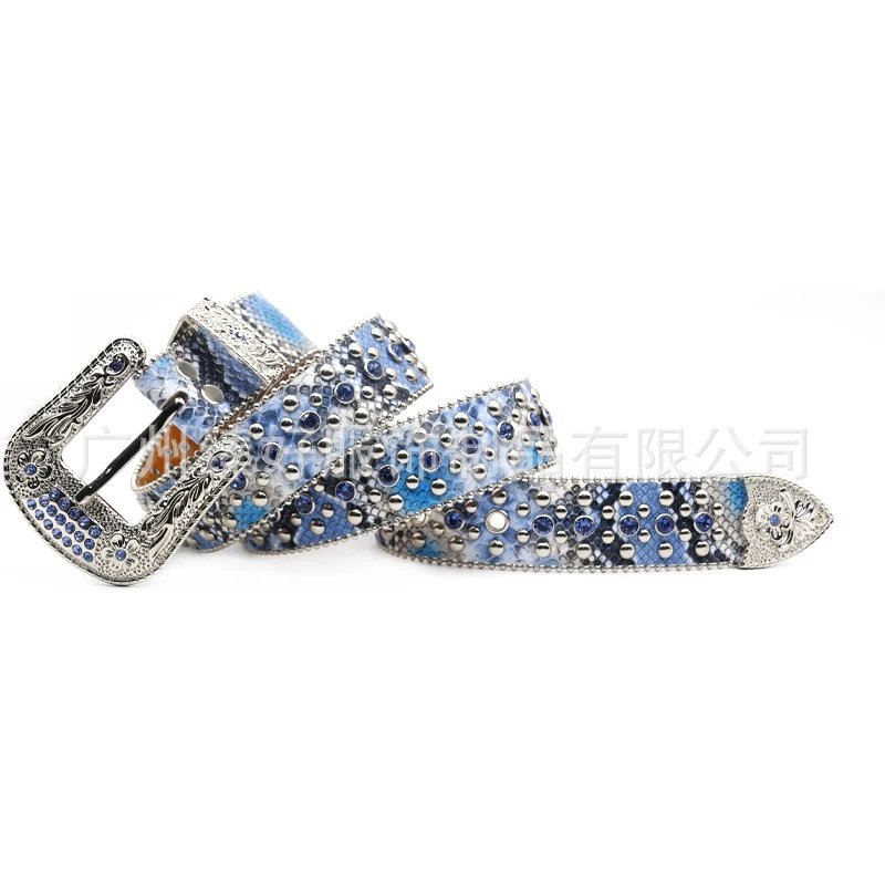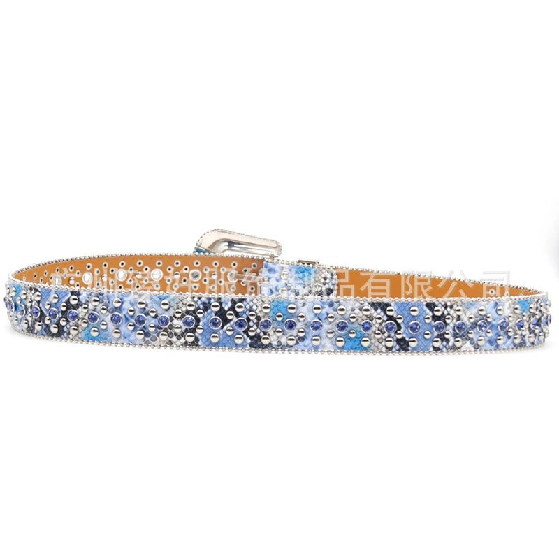 欧美时尚跨境水钻腰带男皮带女镶嵌满钻铆钉朋克演出个性裤腰带男