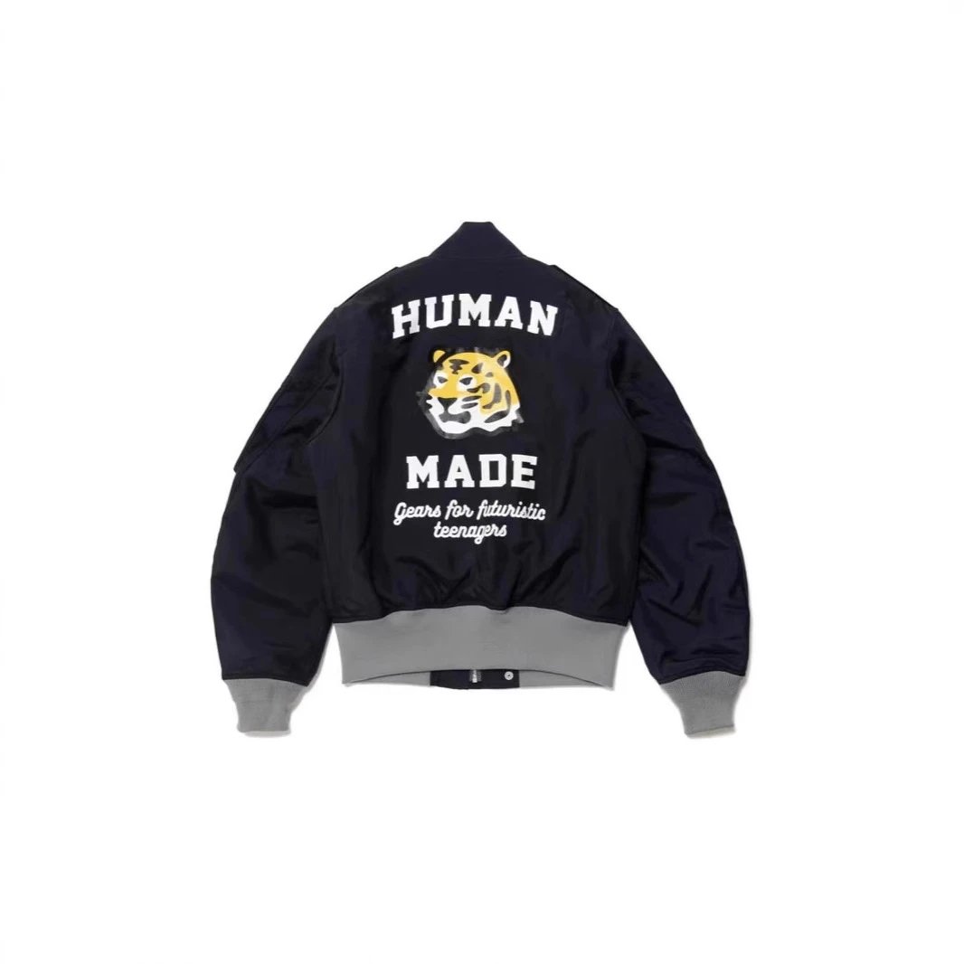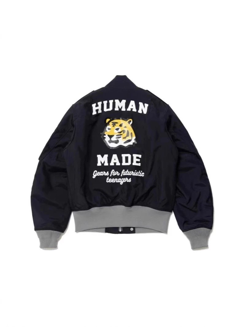 日系潮牌复古human 老虎印花图案夹克外套棒球服男女款秋冬