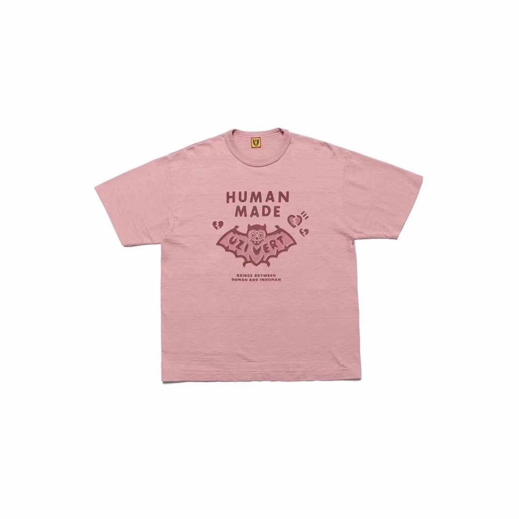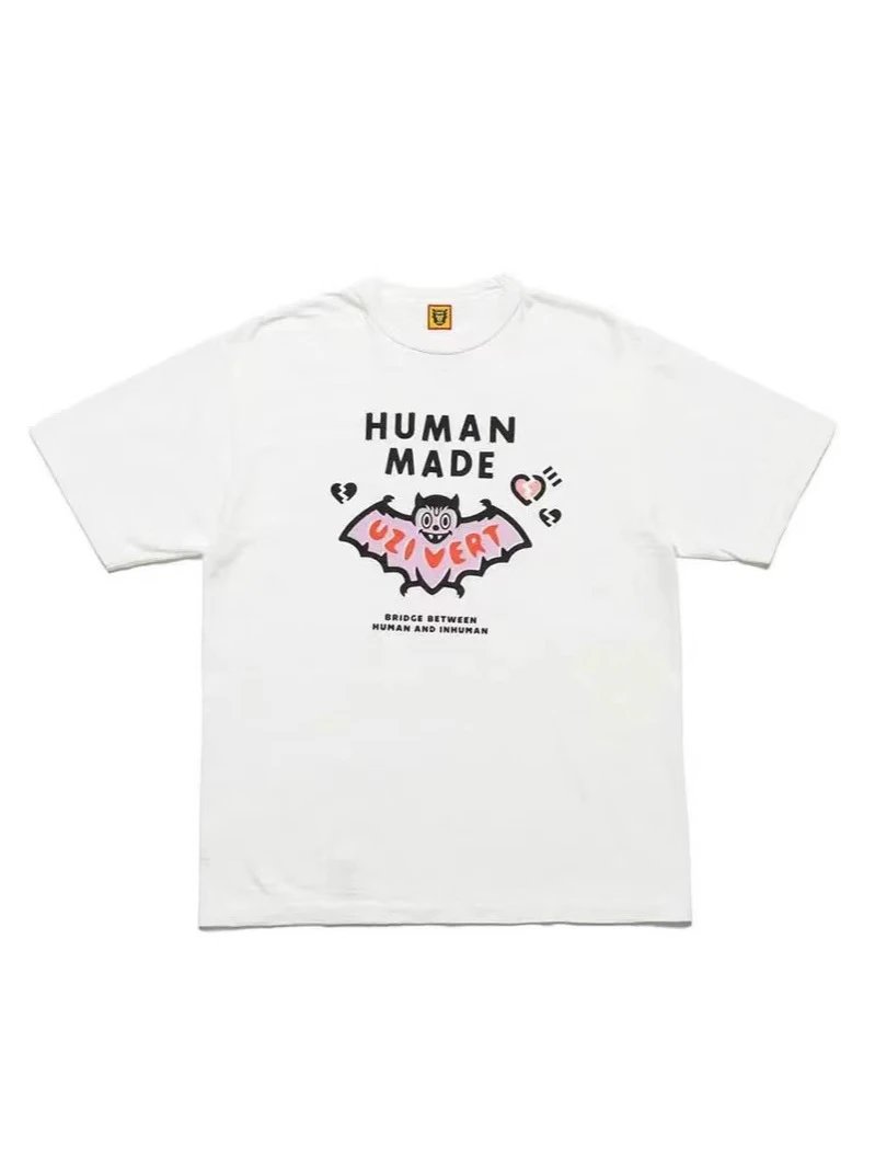 日系复古human蝙蝠袖卡通图案印花短袖竹节棉宽松T恤男女款