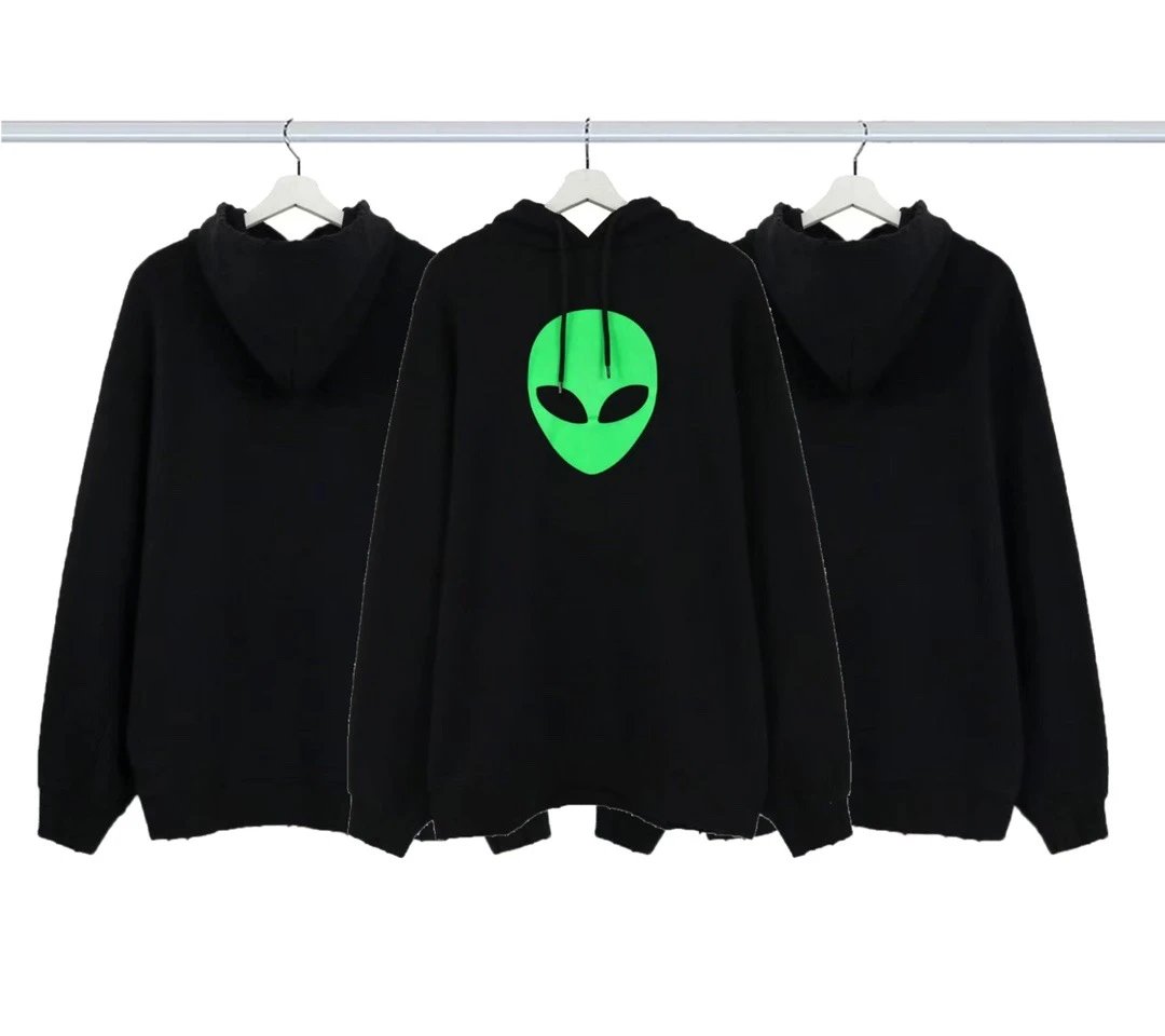 秋冬巴黎外星人印花图案套头连帽卫衣宽松休闲男女款情侣同款帽衫