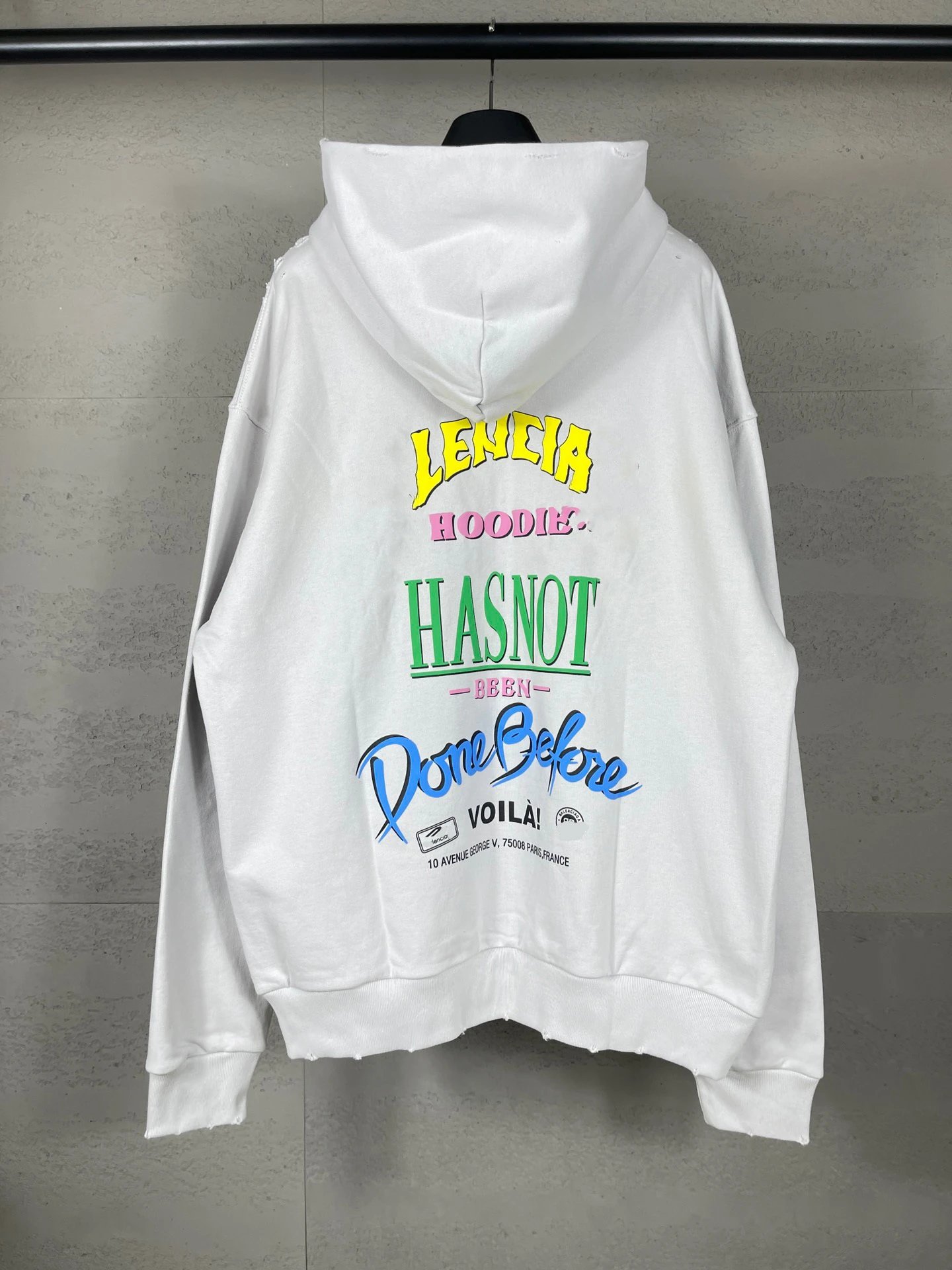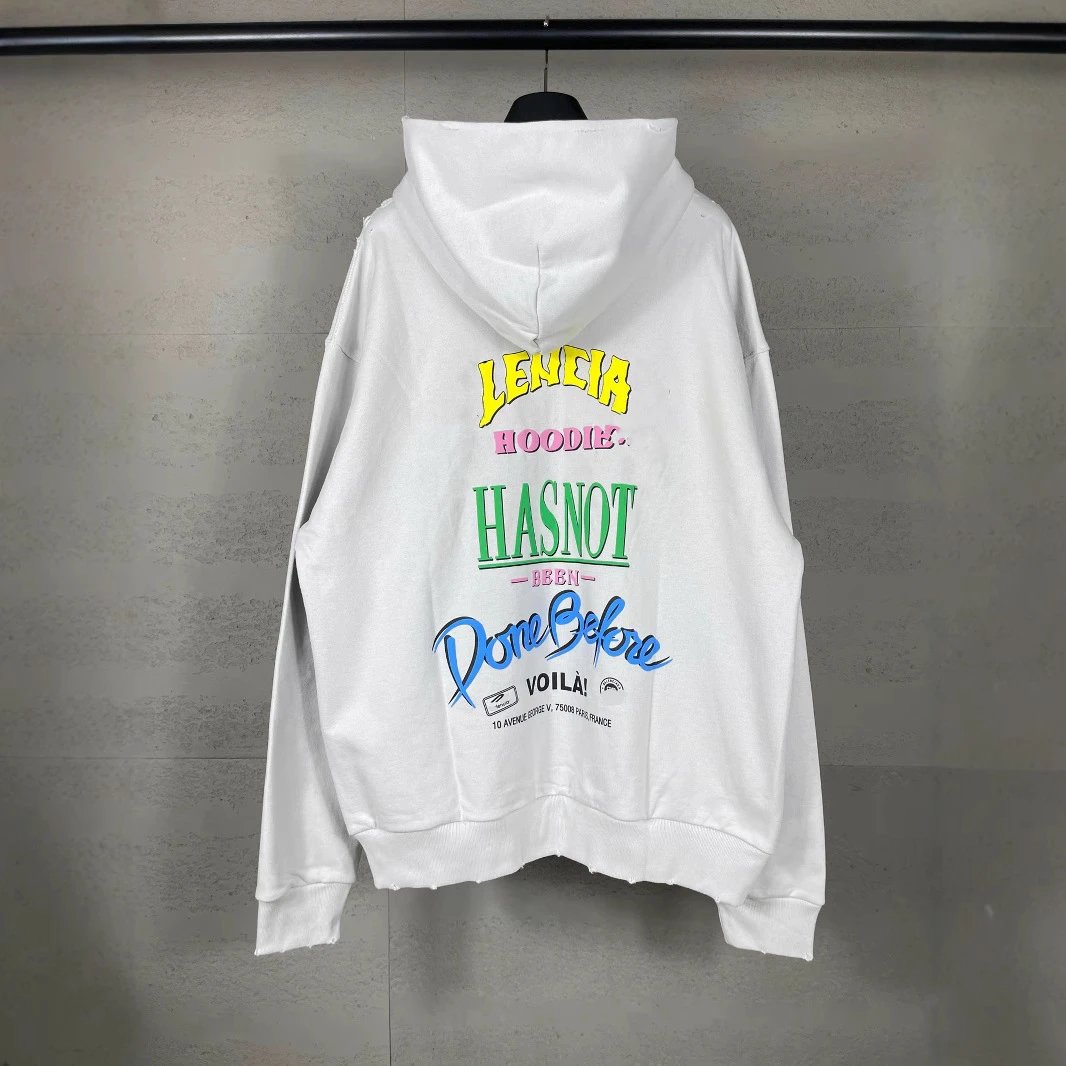 巴黎后背字母发泡印花洗水做旧拉链开衫连帽卫衣男女款os宽松帽衫