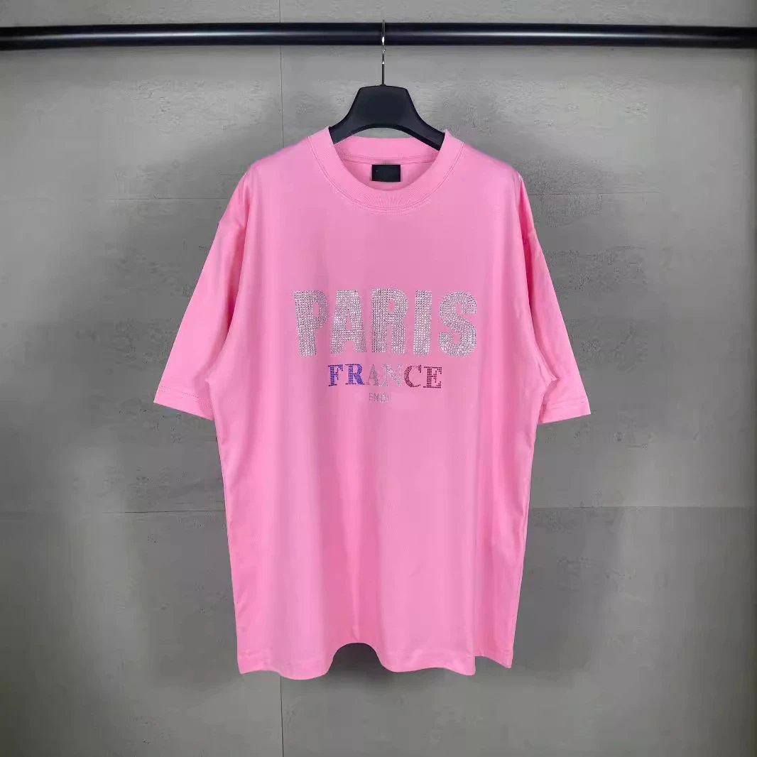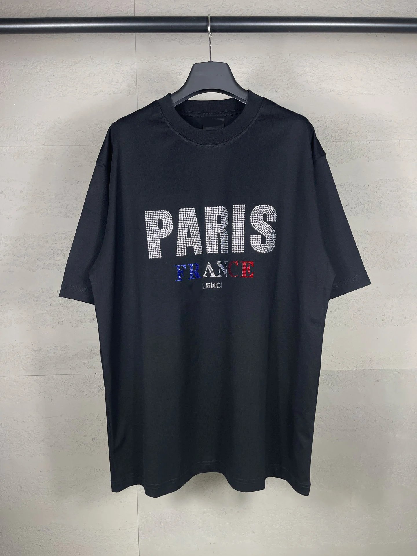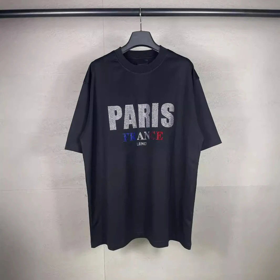 夏季巴黎正面以paris. Stress背烫钻男女短袖T恤宽松休闲打底衫