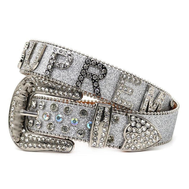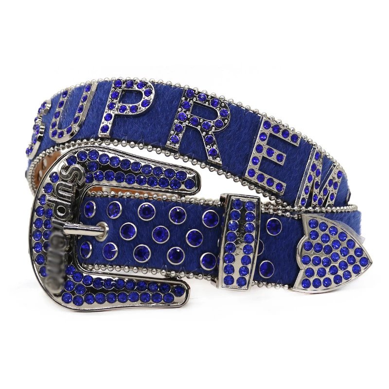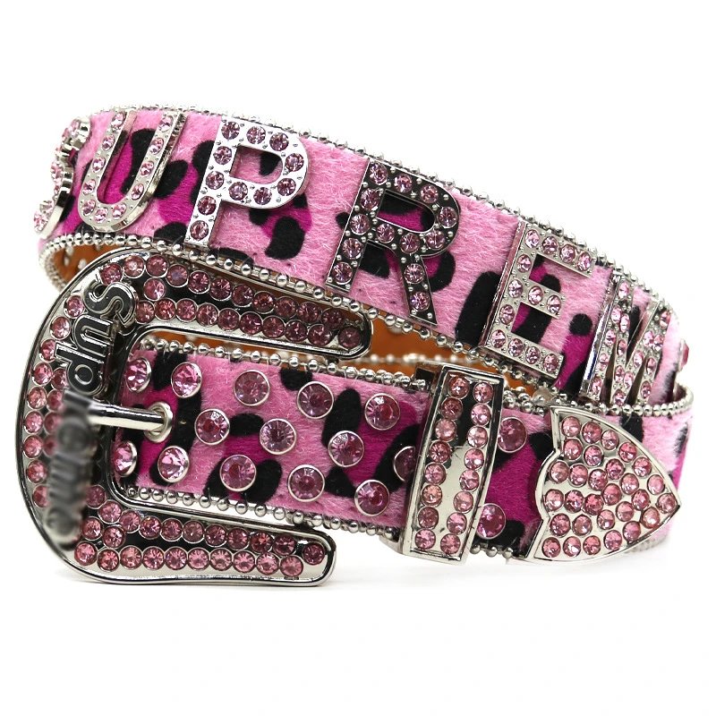 皮带男闪光腰带高级感水钻腰带男朋克时尚潮流字母supreme腰带男