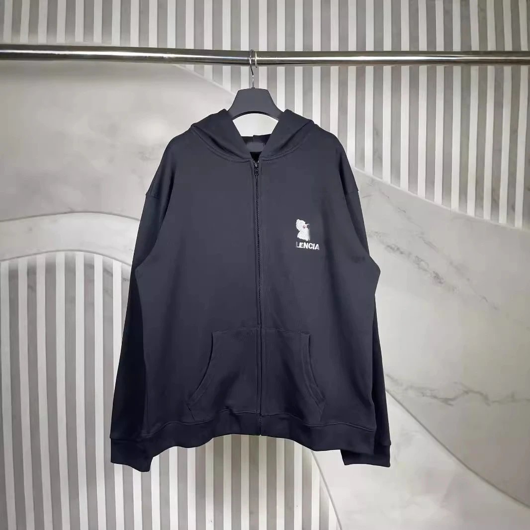 秋冬巴黎胸前考拉熊刺绣字母套头拉链外套男女款宽松休闲卫衣帽衫
