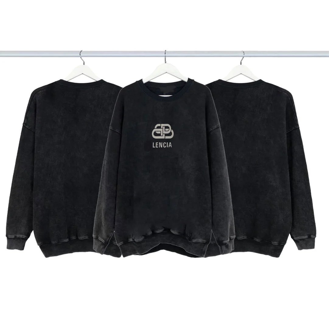 秋冬巴黎锁扣水洗做旧圆领卫衣套头宽松休闲男女款情侣款长袖